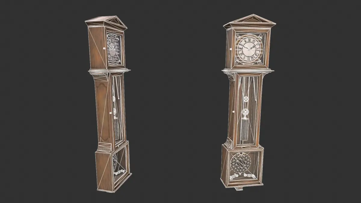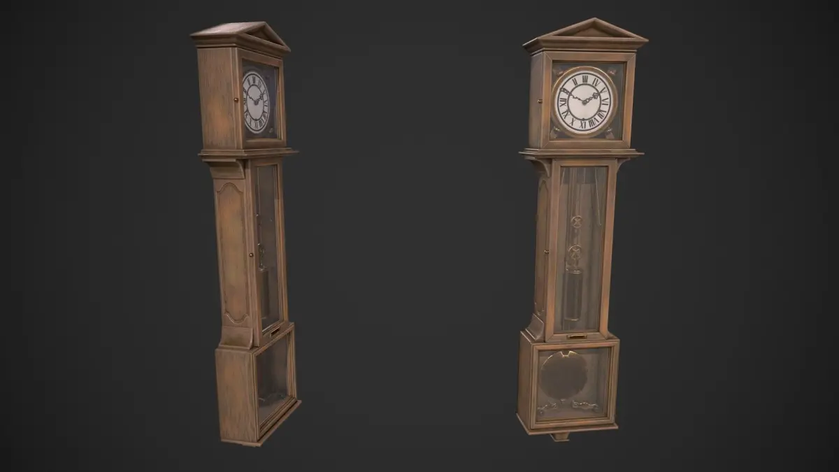 Game-ready Grandfather Clock asset, with PBR textures included in the files. This has 3132 polys (5988 tris) and 3878 vertices.