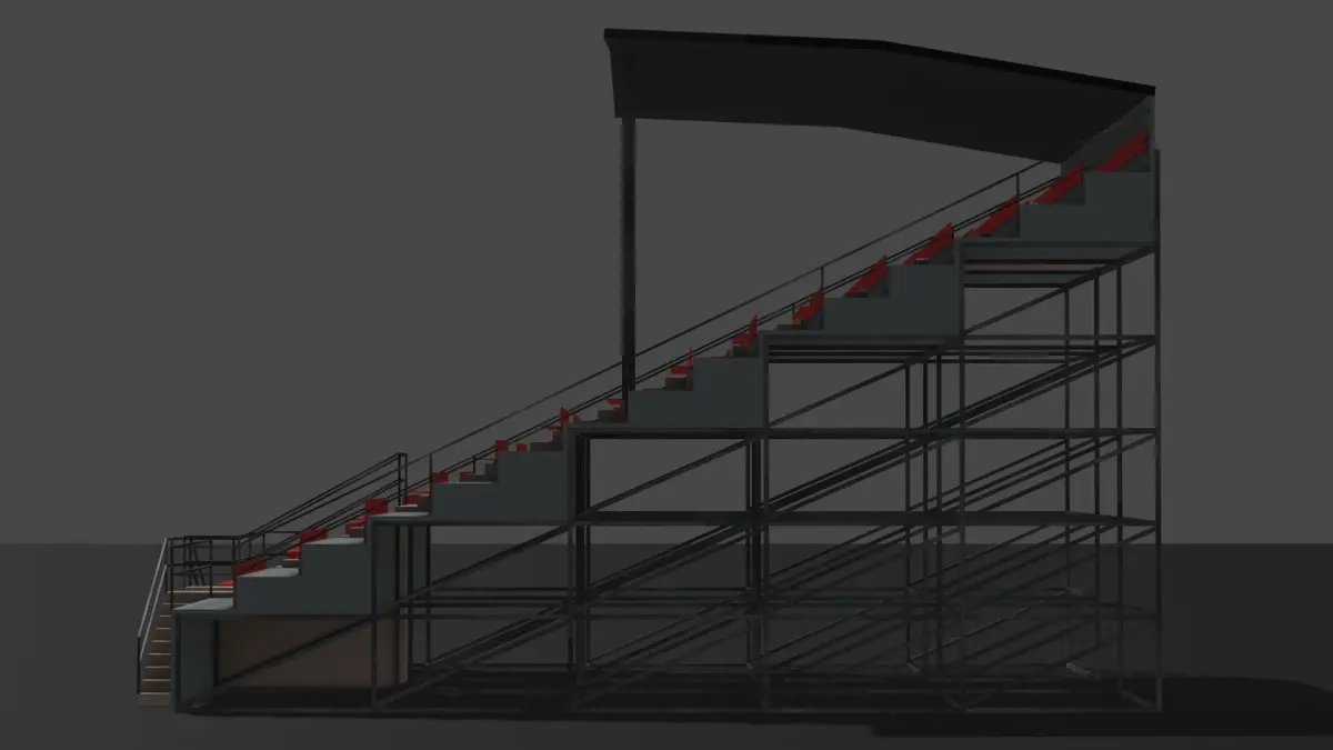 - Roof: The grandstand comes complete with a thoughtfully crafted roof, providing shelter and architectural sophistication.