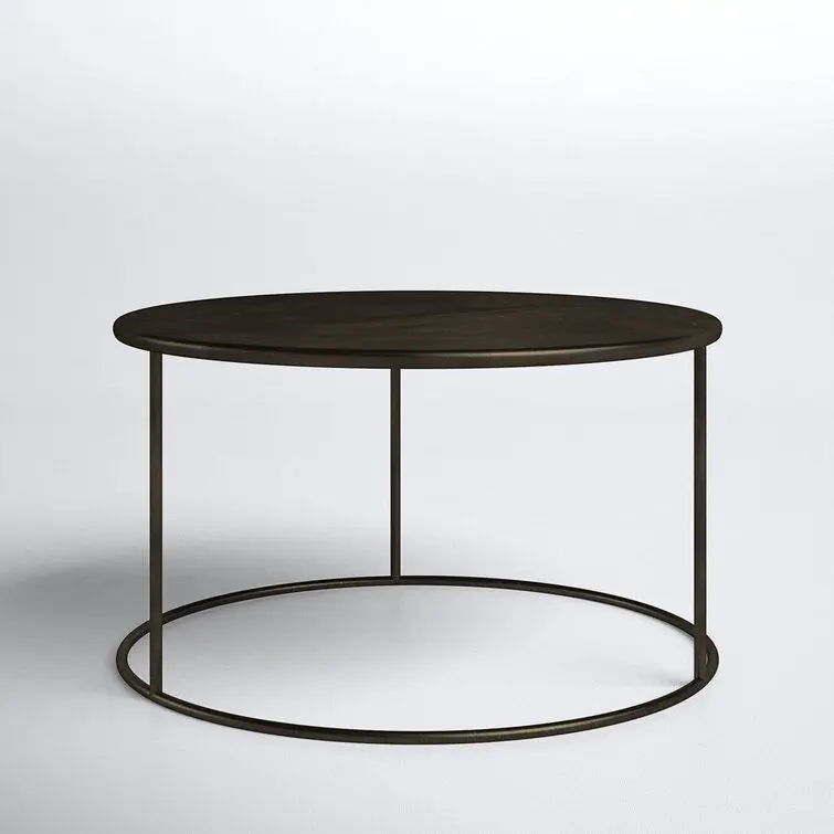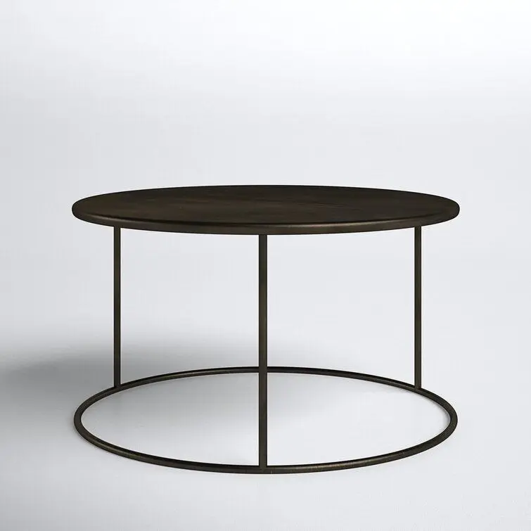- Contemporary circular steel table with a vigorous American industrial black finish.