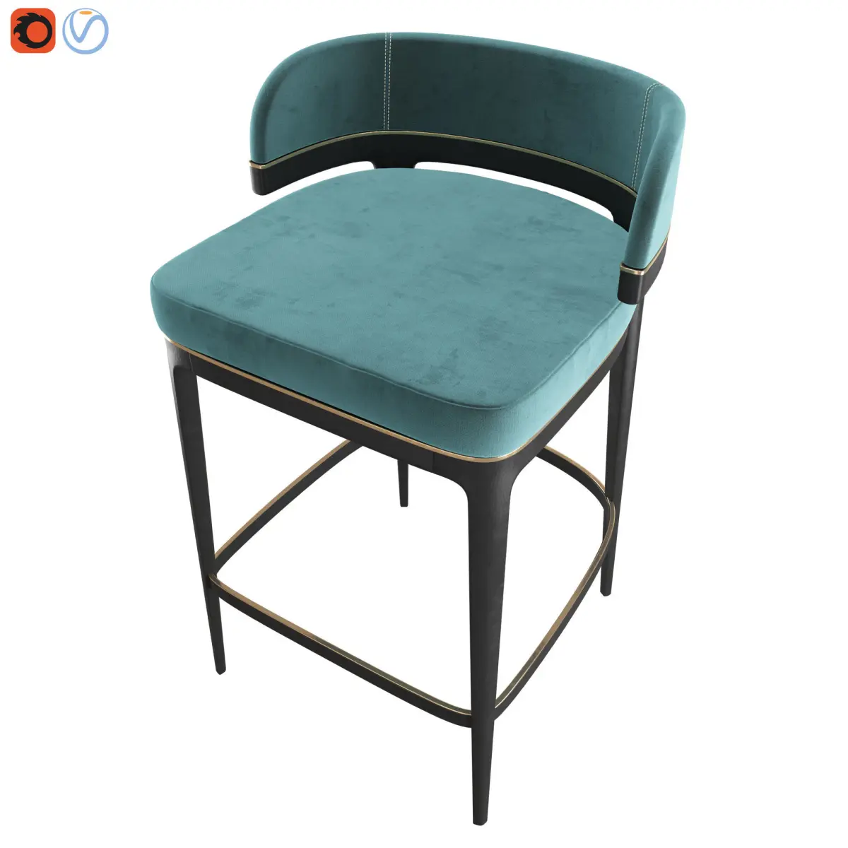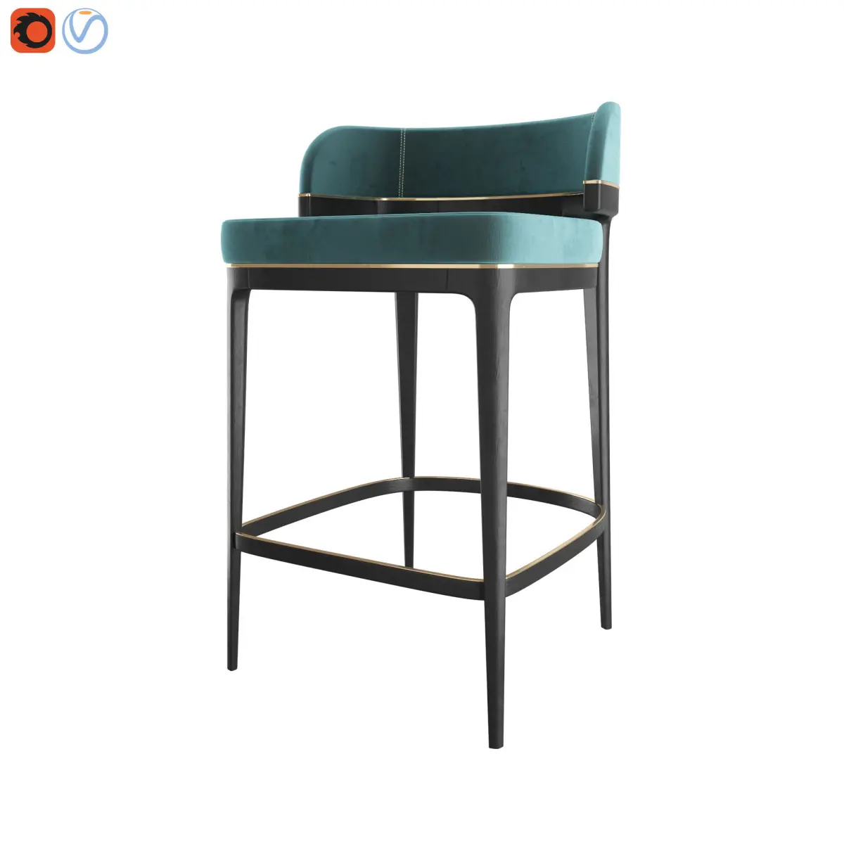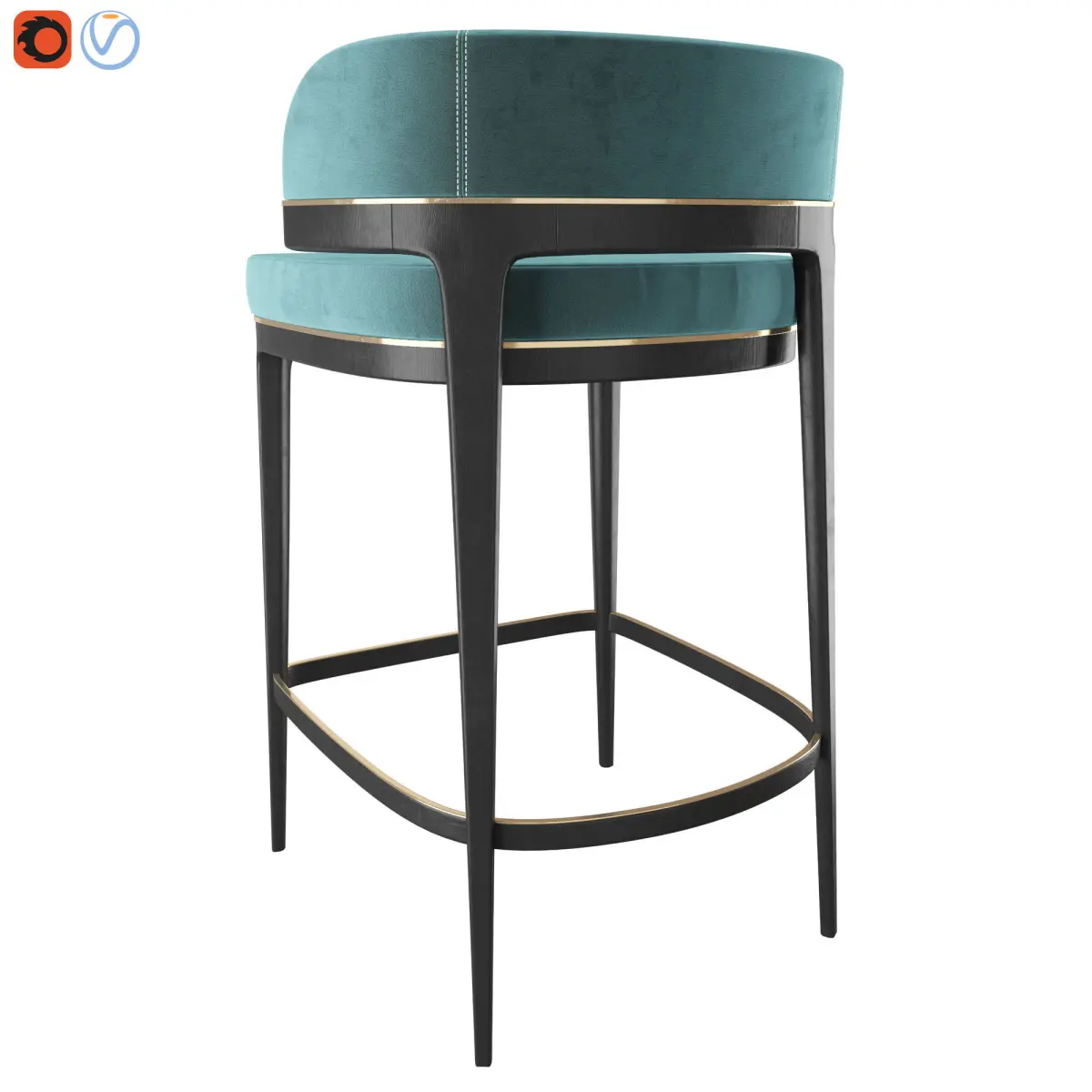The Grange bar stool has a refined silhouette with a strong legs structure supporting the seat. The brass elements outlining the upholstery bring to the design a sophisticated look, exalting the luxury craftsmanship.