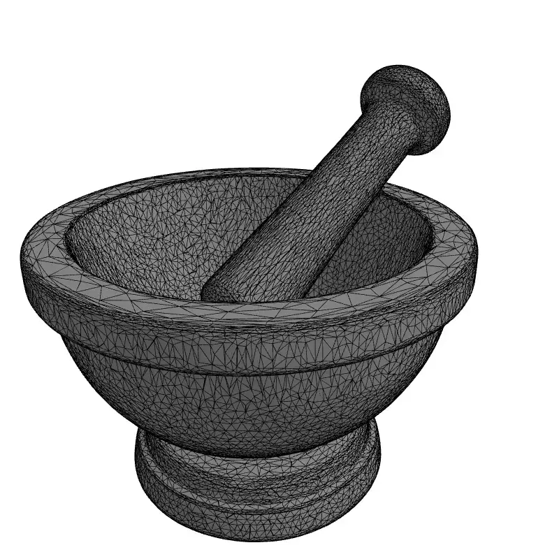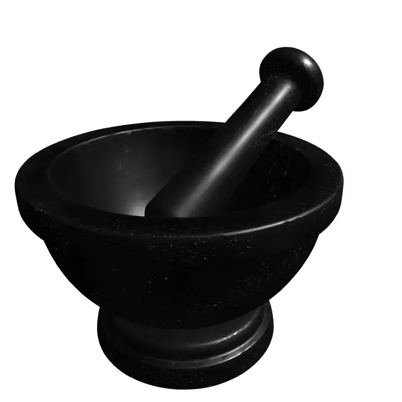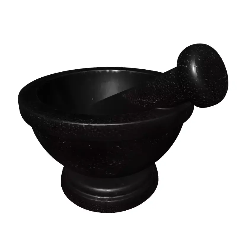 This is a highly detailed and realistic 3D model of a mortar and pestle set, meticulously crafted with a granite-like texture. The model accurately captures the classic design and sturdy appearance of this essential kitchen tool, making it perfect for enhancing various digital scenes with authenticity and visual appeal. This versatile asset can be seamlessly integrated into game development projects, adding realism to kitchen environments, historical settings, or RPGs. Architectural visualization artists will find it invaluable for populating modern or rustic kitchen interiors, creating compelling photorealistic renderings. Furthermore, it's ideal for product visualization, digital art compositions, and interactive augmented reality (AR) or virtual reality (VR) experiences. The model boasts clean topology and is fully UV unwrapped, ensuring efficient texture application and optimal rendering performance. It comes complete with high-quality PBR textures, providing realistic material properties such as roughness and albedo, which react naturally to light. Supported file formats include GLB, OBJ, STL, ABC, DAE, FBX, USD, and PLY, maximizing compatibility across different 3D software and engines. This model is optimized for both real-time applications, ensuring smooth performance in games and AR/VR, and is also perfectly suitable for high-resolution static renderings. Its detailed geometry and texture work make it a valuable addition to any professional 3D asset library.