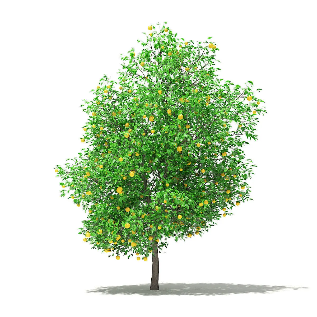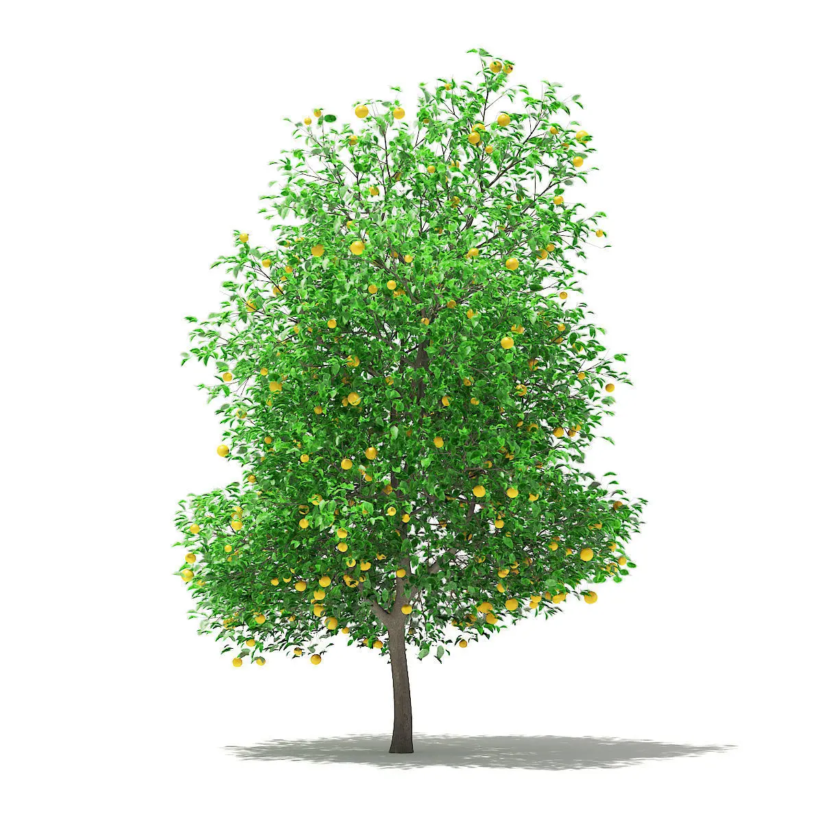 Grapefruit tree with fruits 3d model (Citrus × paradisi). Height: 5.6m. Compatible with 3ds max 2010 (V-Ray, Mental Ray, Corona) or higher, Cinema 4D R15 (V-Ray, Advanced Renderer), FBX, OBJ, VRMESH and Unreal Engine.