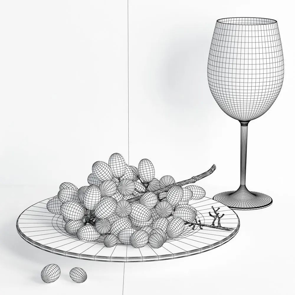 Home Catalog Grapes with white wine glass 3D model