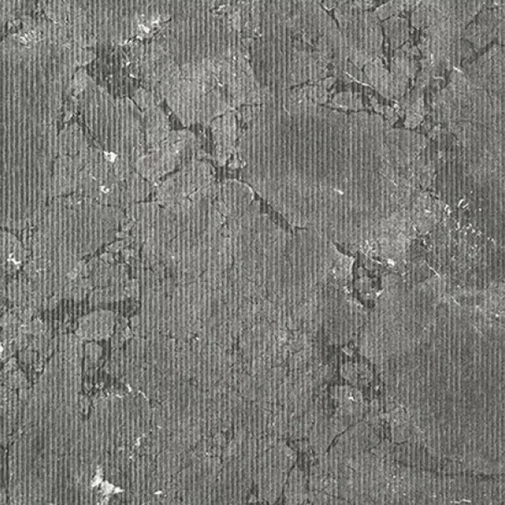 A deep charcoal marble shot through with pale mineral veining is overlaid with fine vertical ribbing, creating a tactile, light‑responsive surface ideal for showers, baths, and upscale hospitality interiors . The subtle striation adds grip and visual interest while preserving the natural drama of the stone, pairing effortlessly with stainless fixtures and concrete basins . Artwork is optimized for seamless large‑format tiling and CGI staging, with crisp vein continuity across panels as shown in the double‑shower installation .