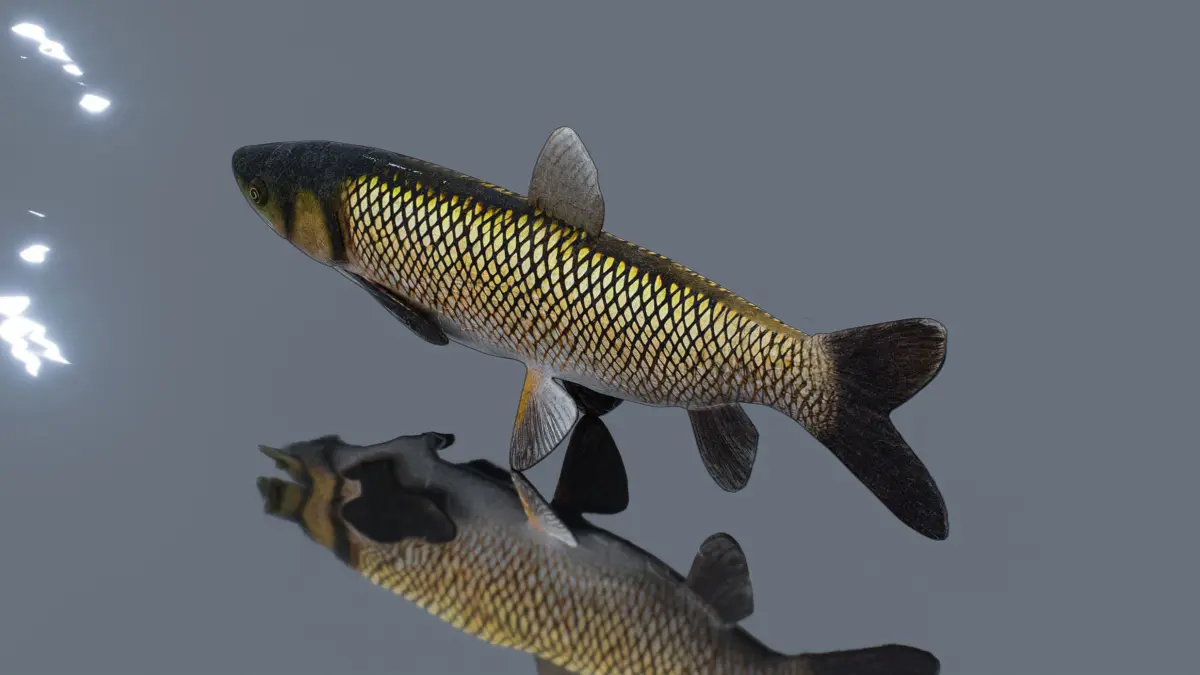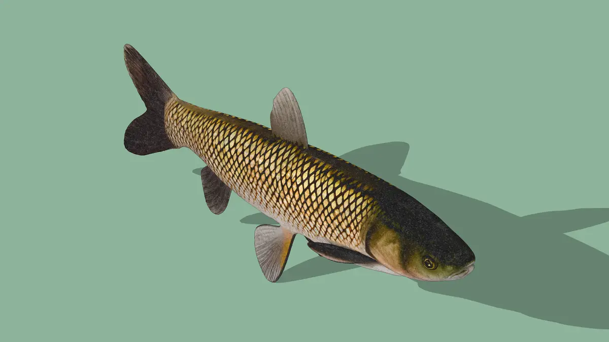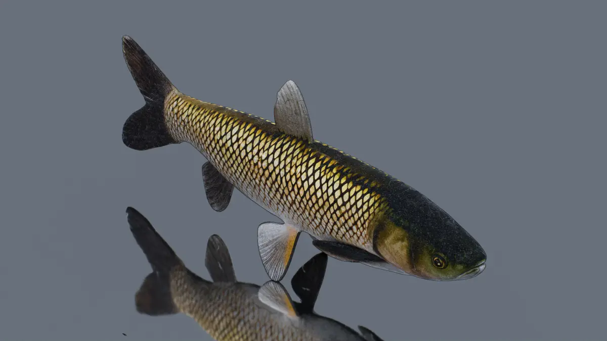 This 3D low-poly model represents a grass carp, a freshwater fish known for its elongated body and silvery-green coloration. Designed with a minimalist approach, the model features a streamlined shape, detailed scales, and a realistic tail fin, making it ideal for use in educational simulations, virtual aquariums, or game environments. The simple yet effective design ensures smooth rendering and compatibility with various platforms, capturing the essence of the grass carp's natural appearance.
