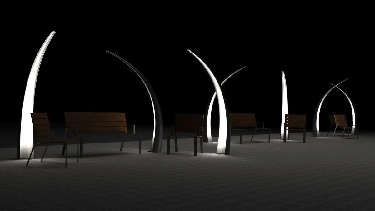 City lights resembeling grass leaves.