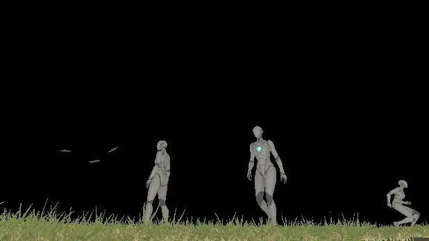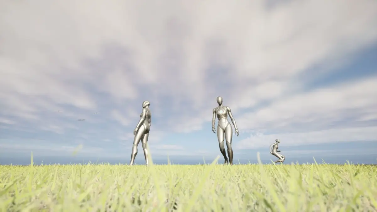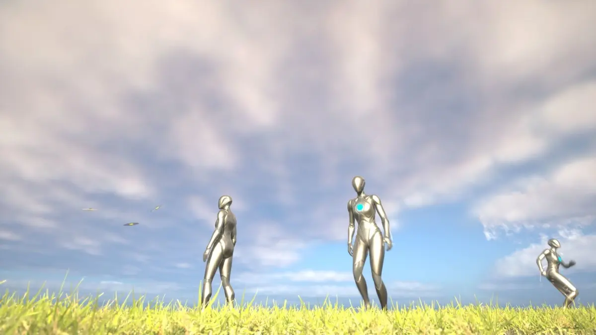 Somewhere in grassy planet,3 unidentified creatures (alien) exploring the planet for resources.