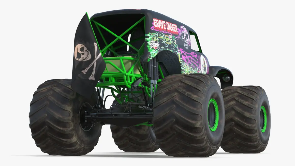 Grave Digger Monster Truck is a three-dimensional model of large custom-built monster truck known for its gothic-themed bodywork and high-performance off-road capabilities.