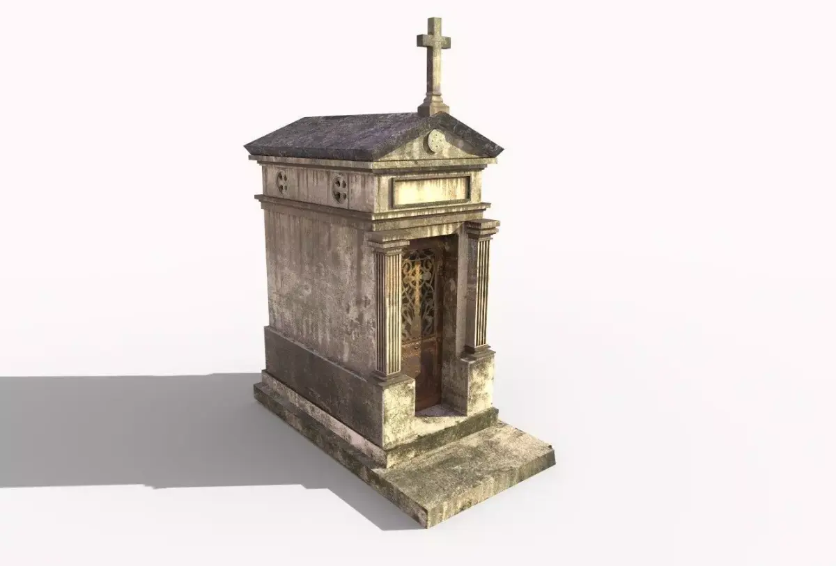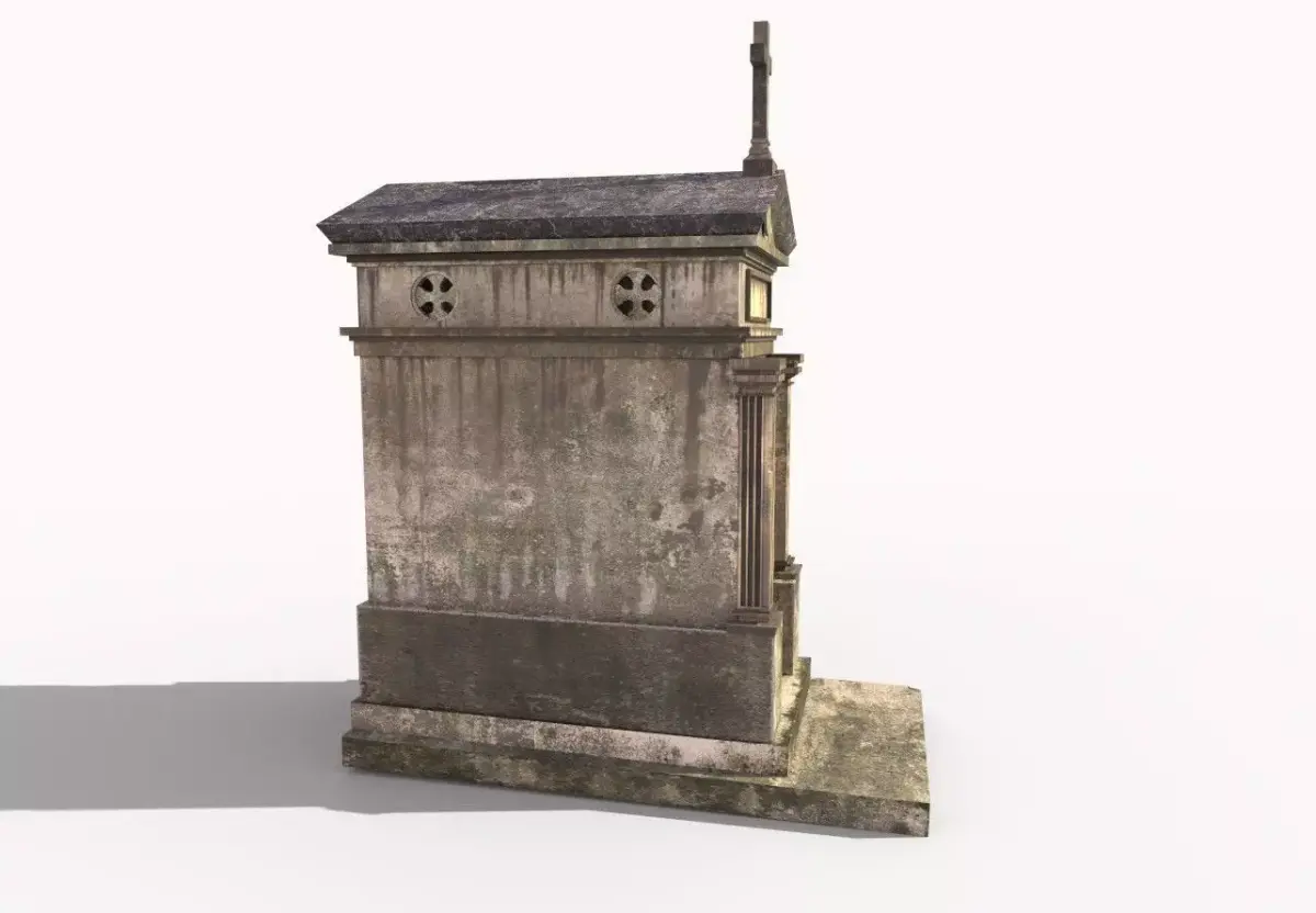 Model of weathered grave mausoleum .Model is very realistic. It has 3 PBR materials. Maps are diffuse - specular - glossiness - height and normal. Also, PBR Metallic-Roughness ( Basecolor- Metallic- Normal-Roughness- Height ) workflow has been added. Model's textures has two sizes; 4096x4096-2048x2048. All maps are PNG formats .
