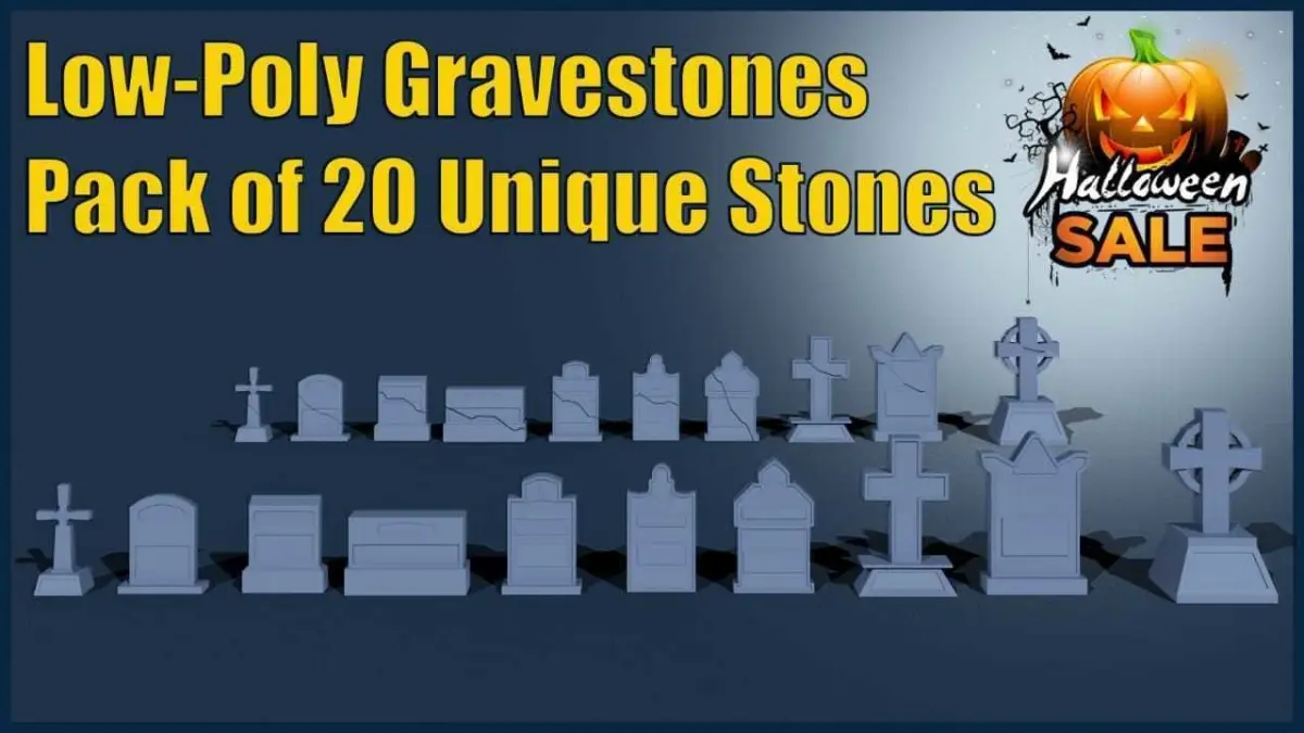 The pack contains -20 unique low poly gravestones.20 unique high poly gravestones with PBR textures and baked normals.