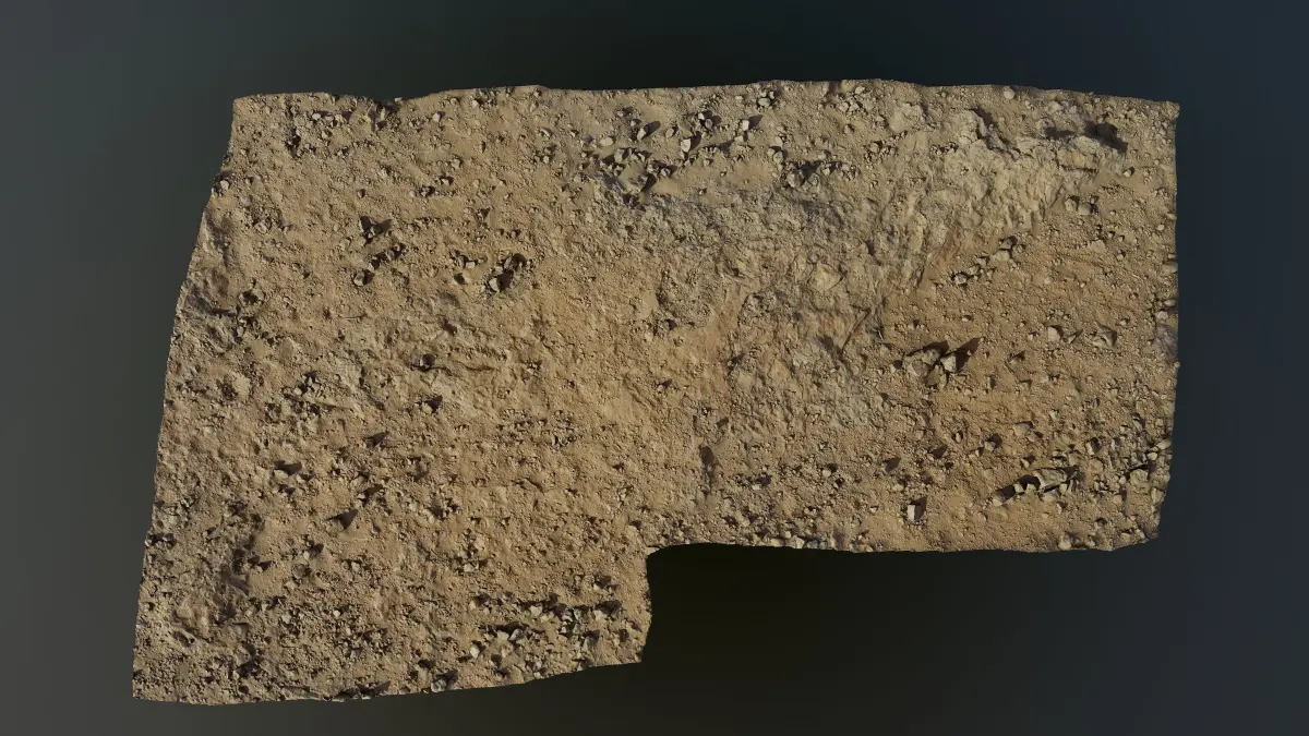 Hi res photoscanned soil/ground area covered with rocks and gravel. The photoscan was made with several hundreds of pics to get the fine details.Model comes with 16384X16384 hires Albedo,AO,roughness, normal and detail normal maps .Vertices: 12867909 Polygons:25472560 . Ideal for baking textures from or for use as high detail mesh.fbx format