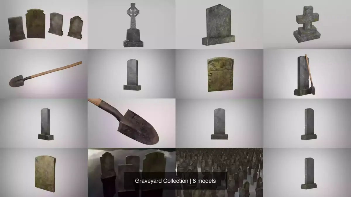A small collection designed to create an old, authentic cemetery.The graves are partially covered with moss, and some of them are damaged or weathered by time.Each grave uses 4K textures and includes two normal maps for convenience: OpenGL and DirectX formats.