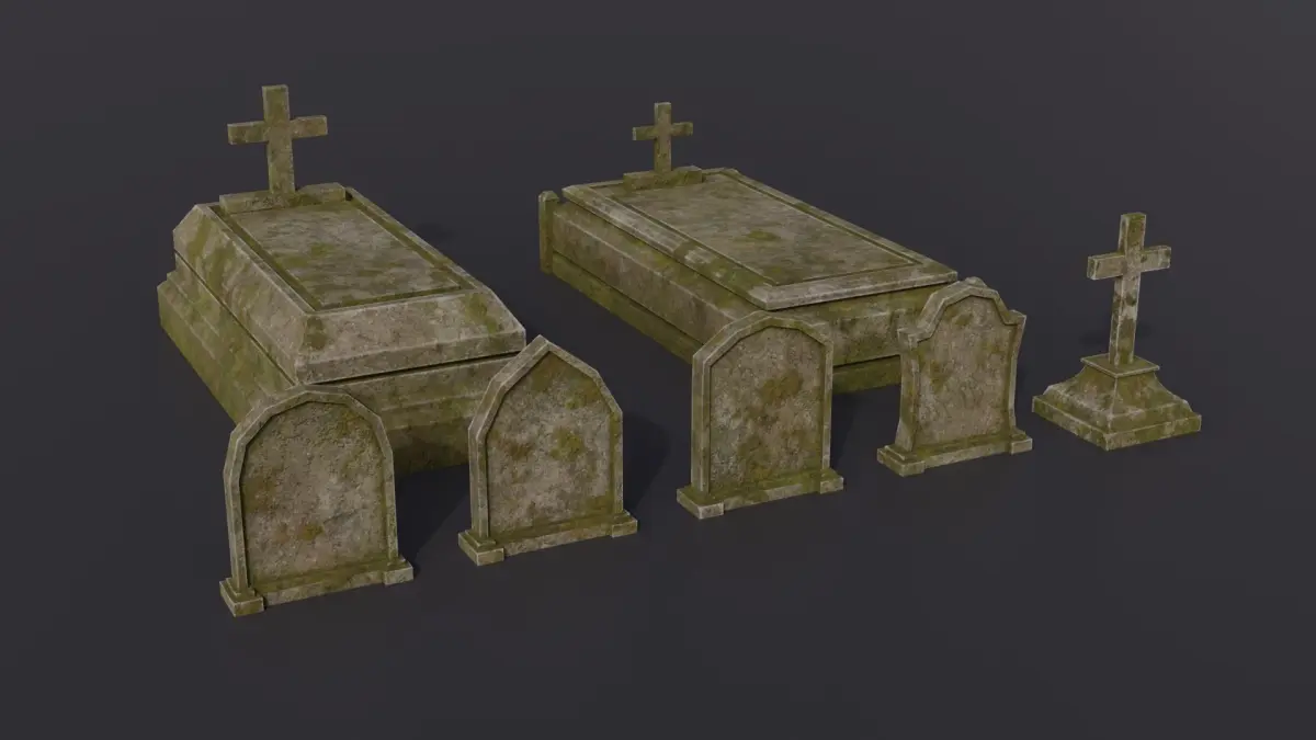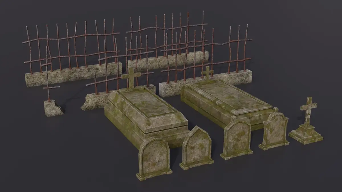 Kit of 11 realistic low-poly graveyard 3D models