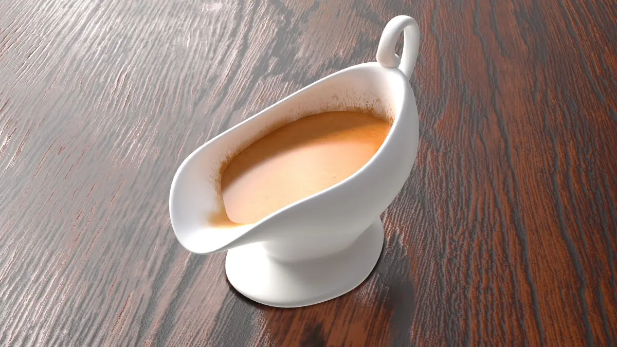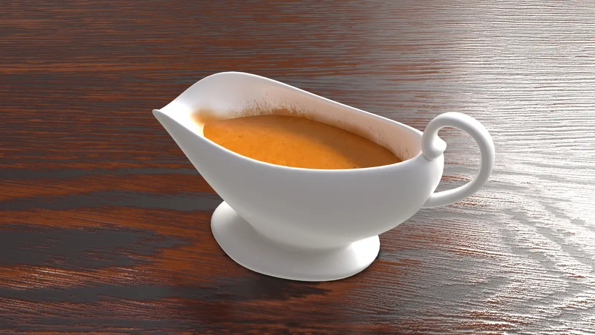 gravy sauce pitcher on wooden table Low-poly 3D model