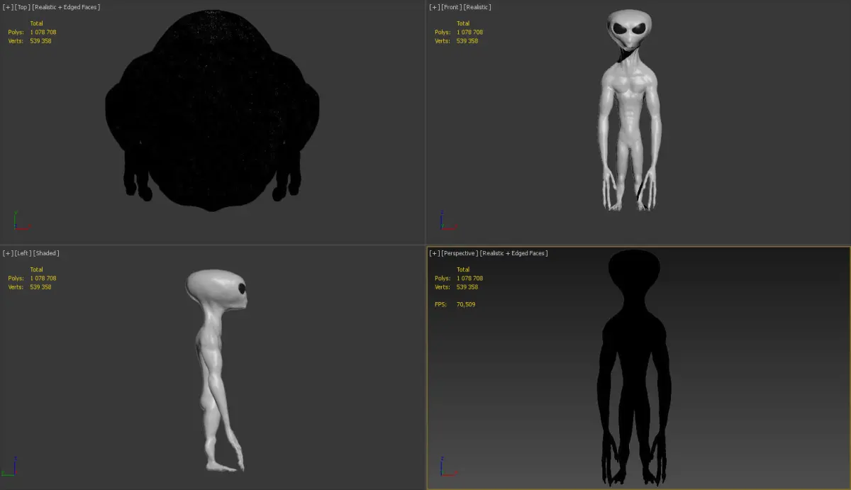 A cg model of a fictional gray alien humanoid. The packege includes an .obj file and the original Sculptris .sc1 file where this model was created. You can download the free Sculptris software from Pixologic's website.