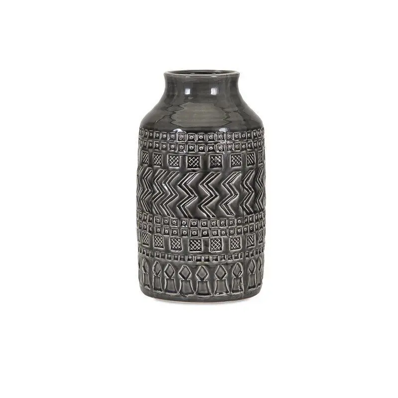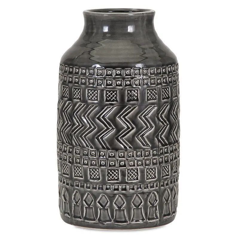 - Perfect for housing your favorite florals or making a statement all on its own, a vase like this is a great way to add a decorative touch to your home with a handy function. This vase, for example, is a great option for adding a boho touch to your ensemble. Crafted from ceramic with a glossy gray finish, this piece features a collection of geometric accents for a look that's both eclectic and textured.