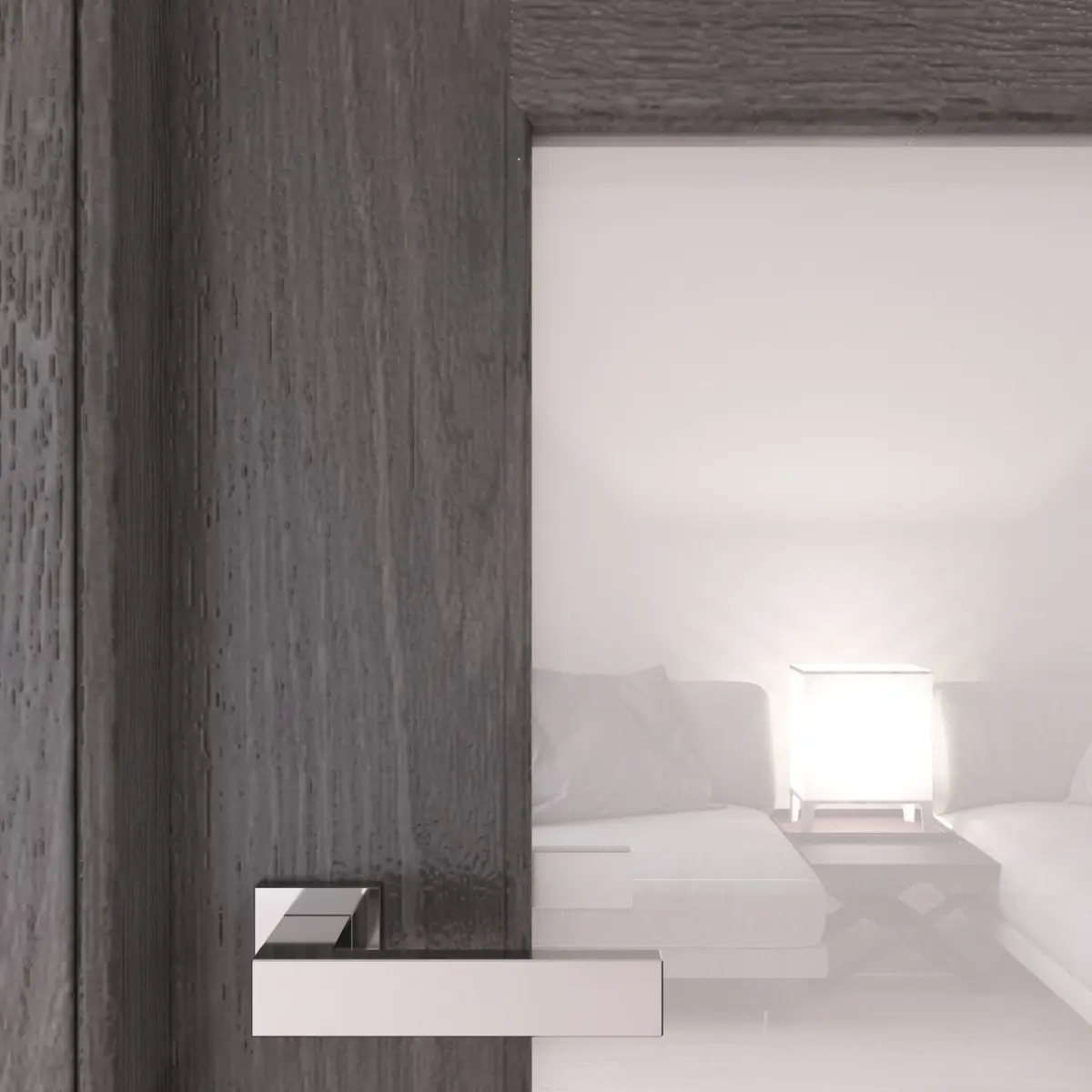 Modern gray oak interior glass door.Radial corners of profiles.The size of the door leaf is 2100 x 800 x 41 mm.Prepared for high resolution realistic renders. Previews were rendered in 3ds Max 2015, Corona renderer.Lighting, cameras and studio setups are not included.