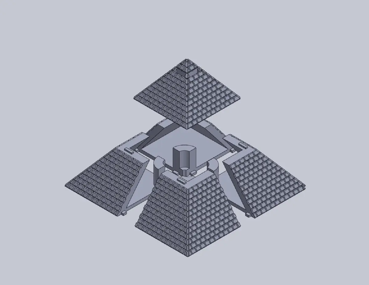 Notes: 1. 1/1000 scale model of the pyramid located in Giza, Egypt. 2. At six inches tall, this pyramid is a replica of the Pyramid of Khufu. At full assembly, the base measures 9.5 inches. 3. Recommended Filament Color: White or Light Silver/Grey. The streamed files follow this order: Left/Bottom Front, Left/Bottom Rear, Right/Bottom Front, Right/Bottom Rear and Top. 4. Other Assembly Components: Two-inch candelabra socket, eight inch white cord set w/switch and LED candelabra bulb (see pics or [Assembly Instructions](http://www.outerbankslights.com/wp-content/uploads/2014/12/Great_Pyramid_Giza_Assembly.pdf)).