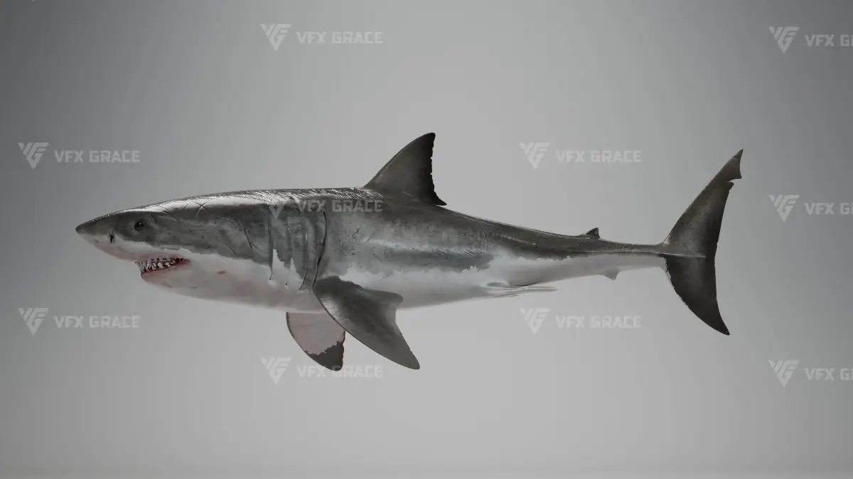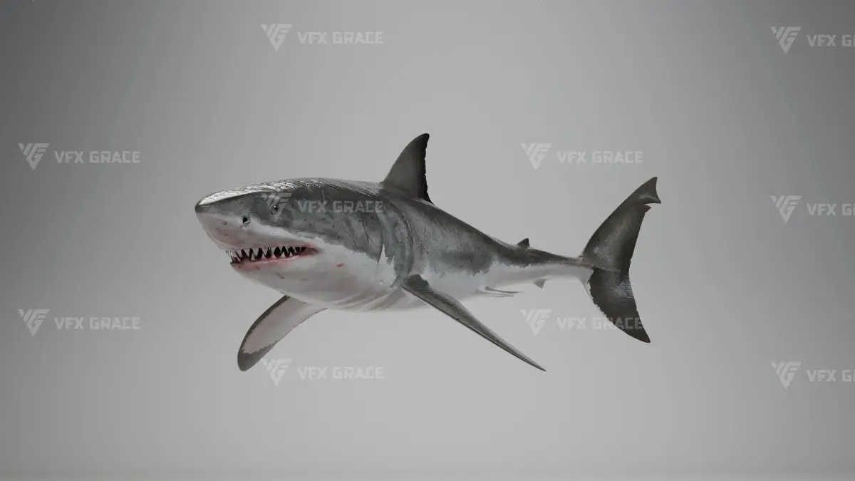 This is a high-quality great white shark model with multiple 4K UDIM textures, rigging and animations. It also comes with realistic muscle structure. This model is made with Blender and Cycles renderer at real-world scale.