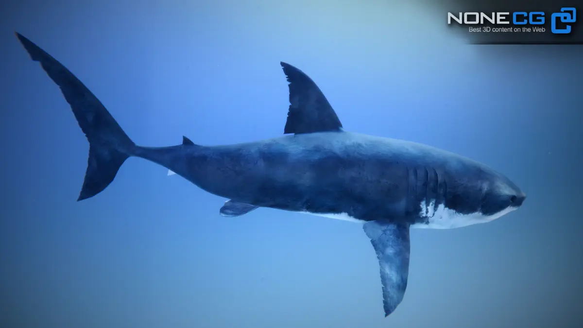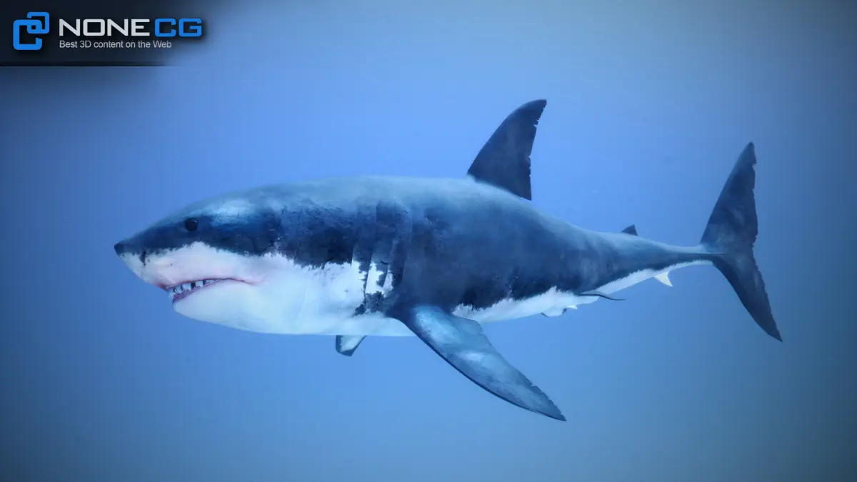 High detailed and animated white shark, game ready.