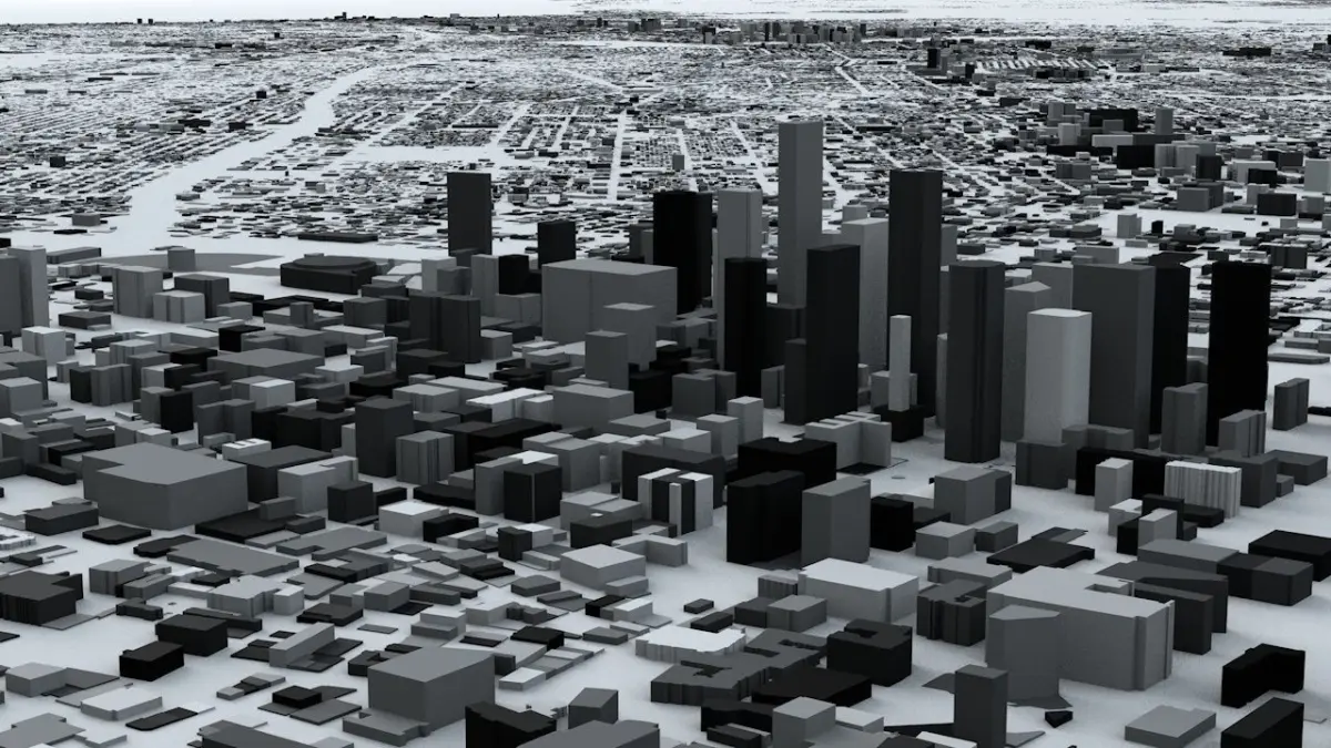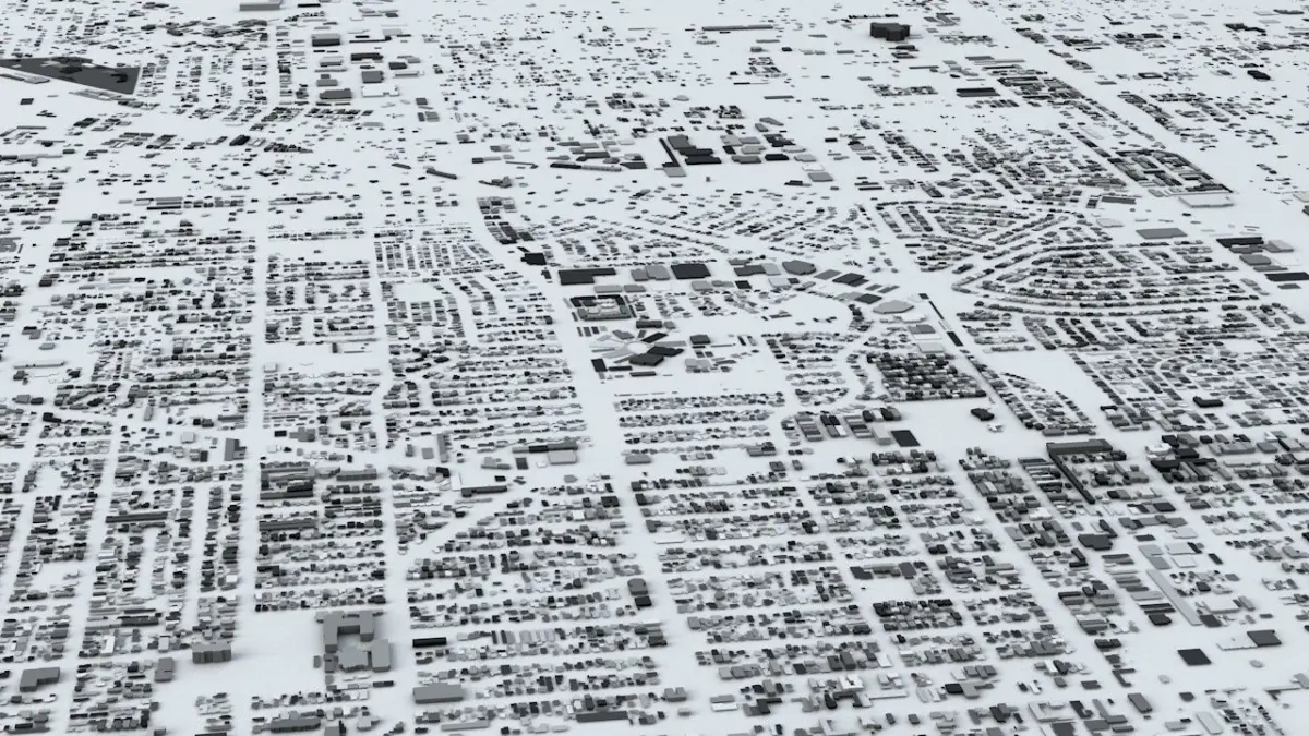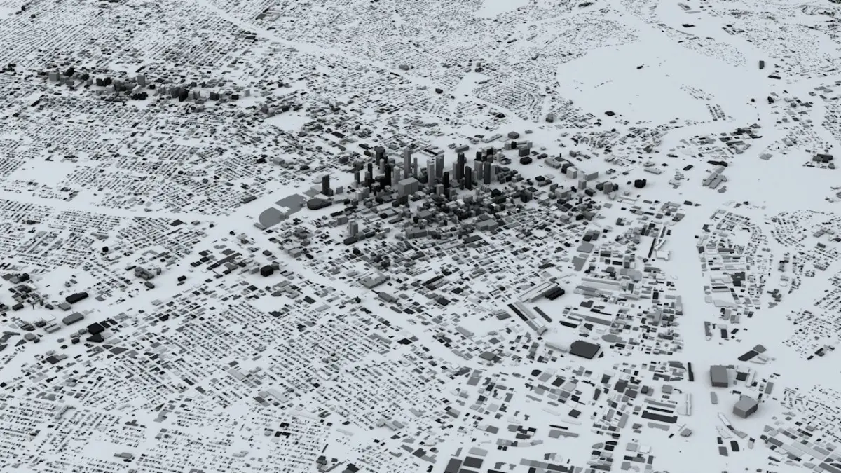- the model is positioned on a flat surface (all buildings are on the “floor” - no elevation data included)