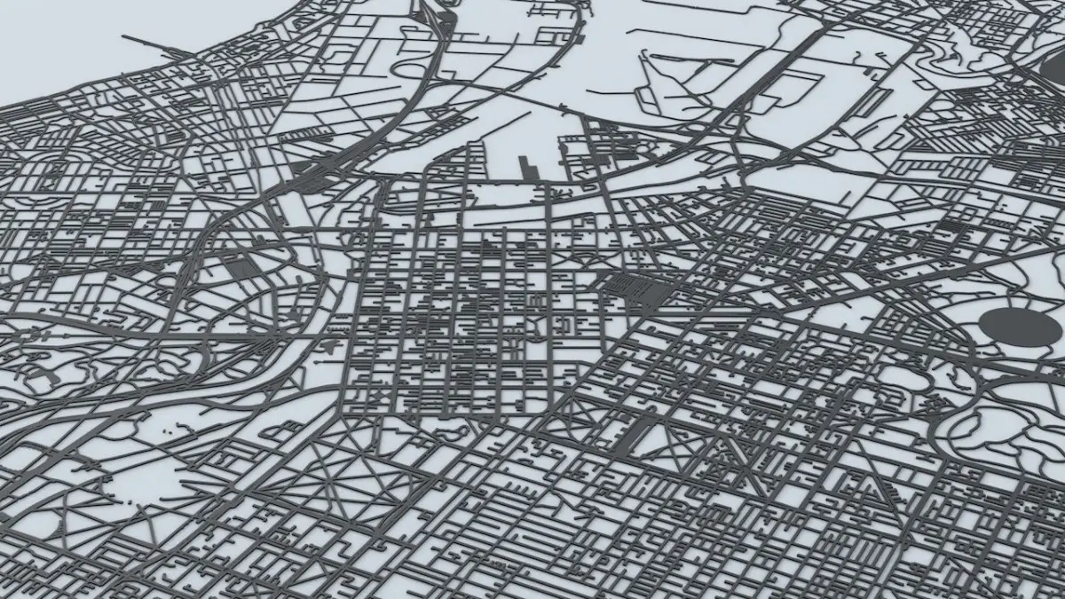 - the model is positioned on a flat surface (road network is on the “floor” - no elevation data included)
