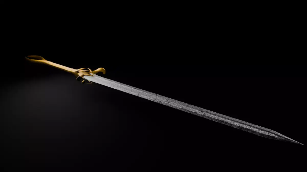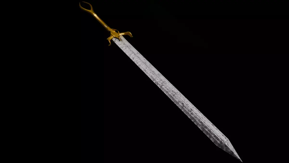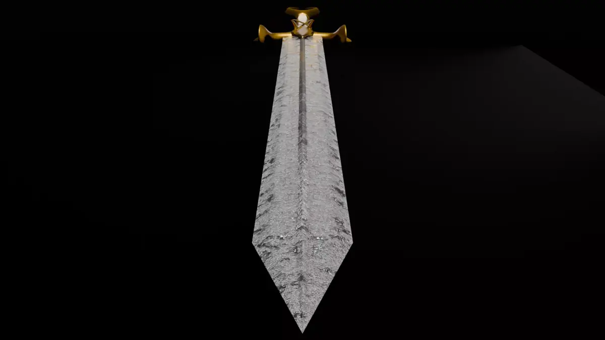 A greatsword with a gold hilt and rough steel blade.The sword has a total length of approximately 2 meters, or 6.5 feet. The hilt is made of gold with two inlayed gemstones. One ruby and one emerald.The blade itself is steel with a rough, damaged texture.All materials are node based and made in Blender.Not UV unwraped.High quality with decently low polycount, good for higher end games or closeup shots.