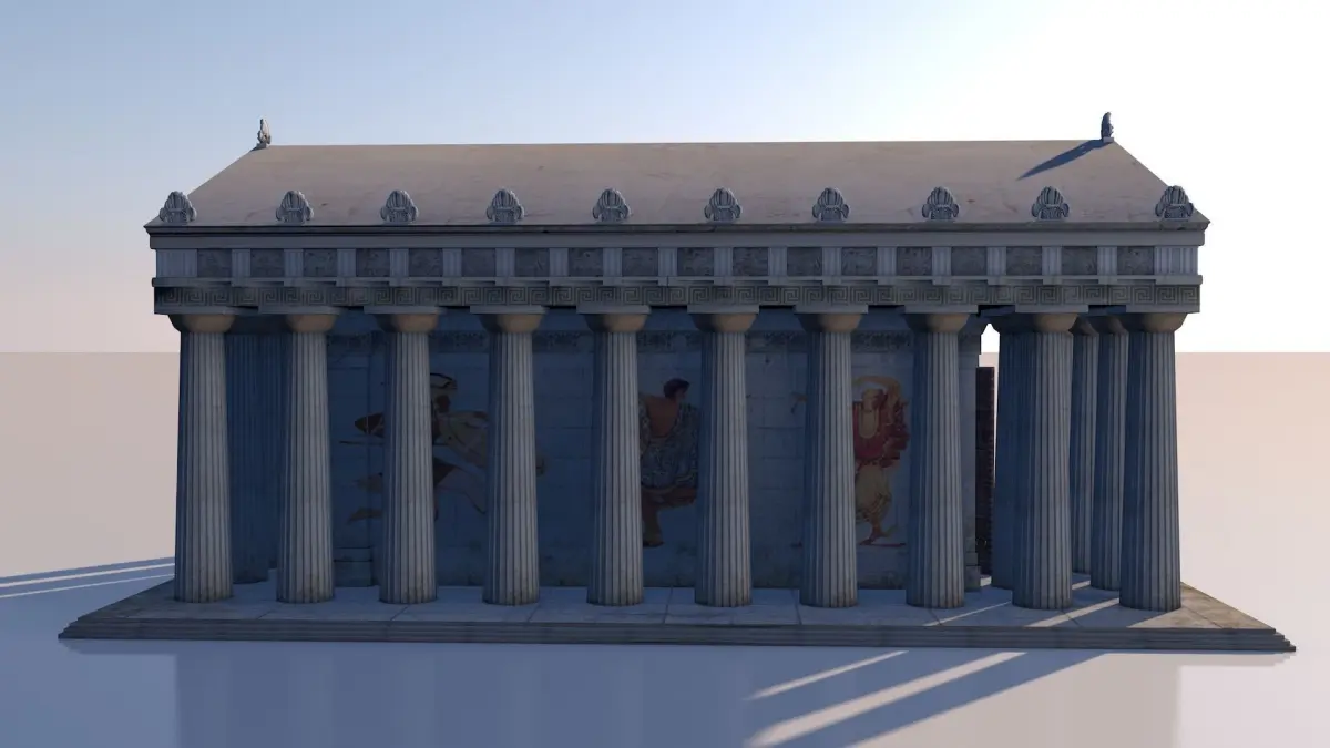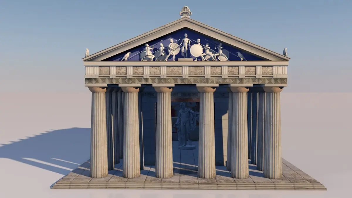 Doric Greek temple, includes high resolution textures, all sculptures, great level of detail and realism, perfect for close-ups and finished interiors ready to decorate