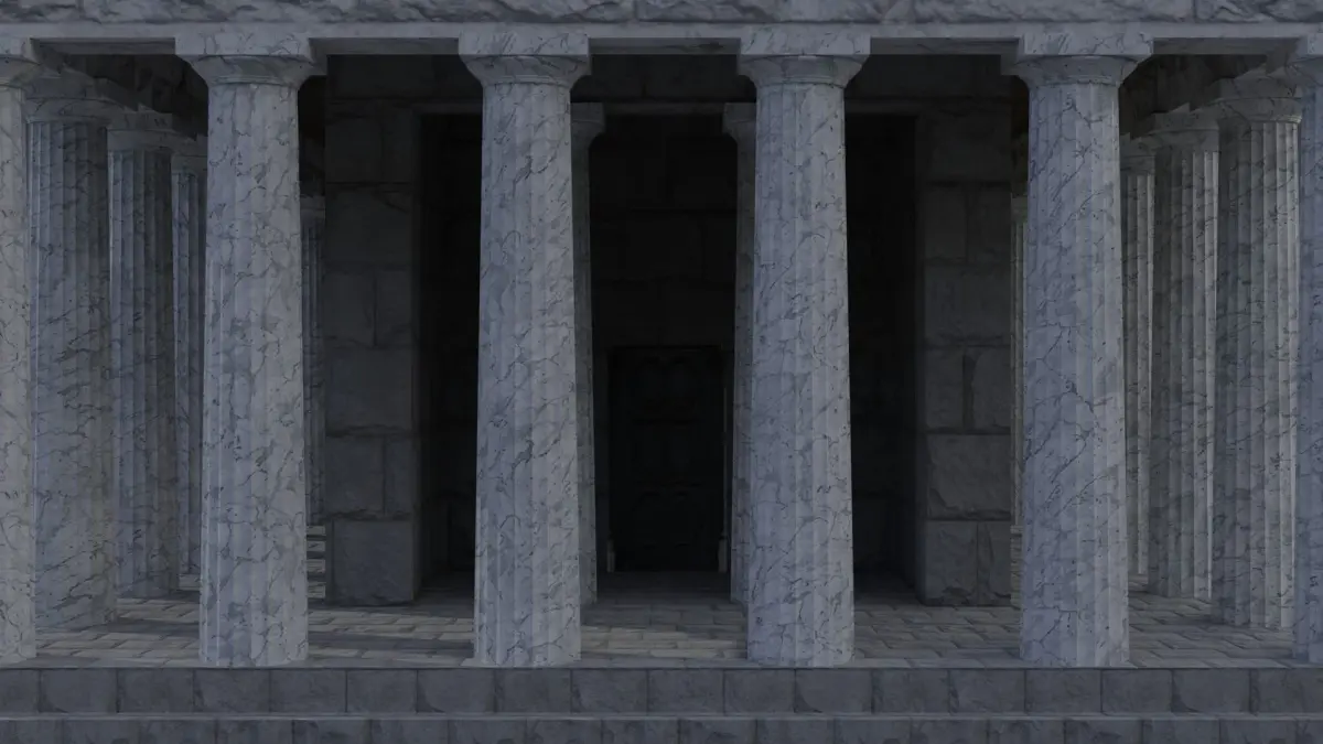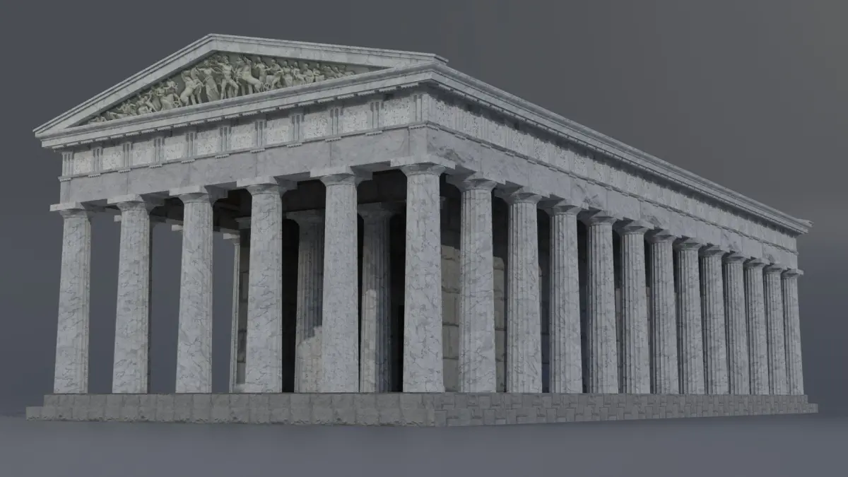 Doric temple. Free interpretation based on the drawings of Canina L. (1834) of the Temple of Hephaestus (Athens, Greece).