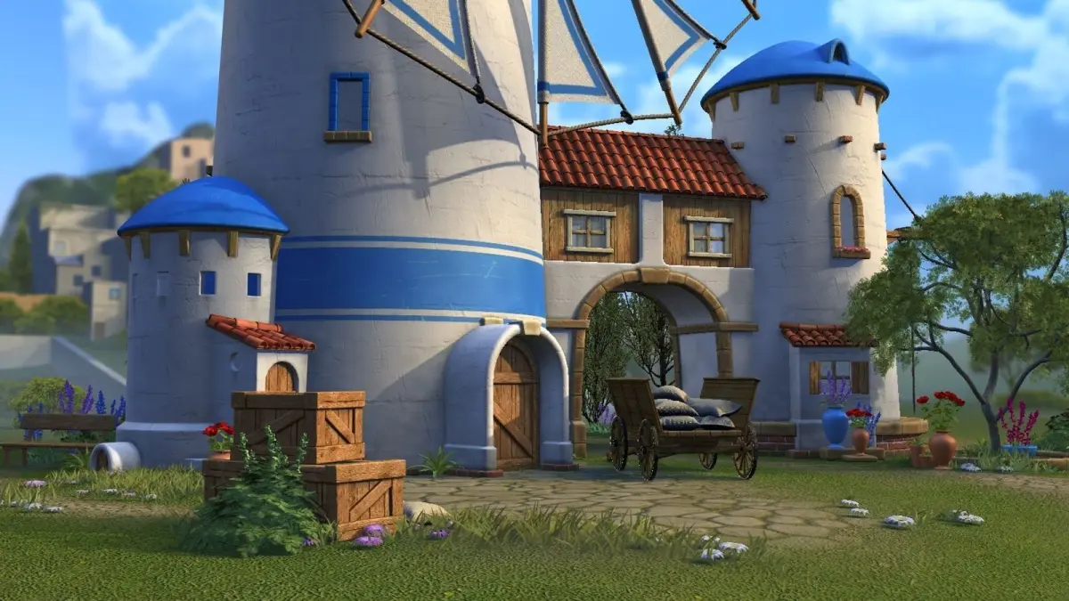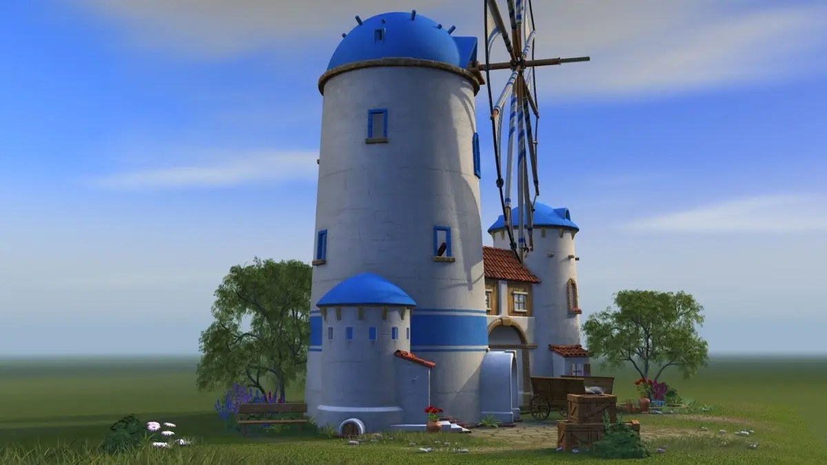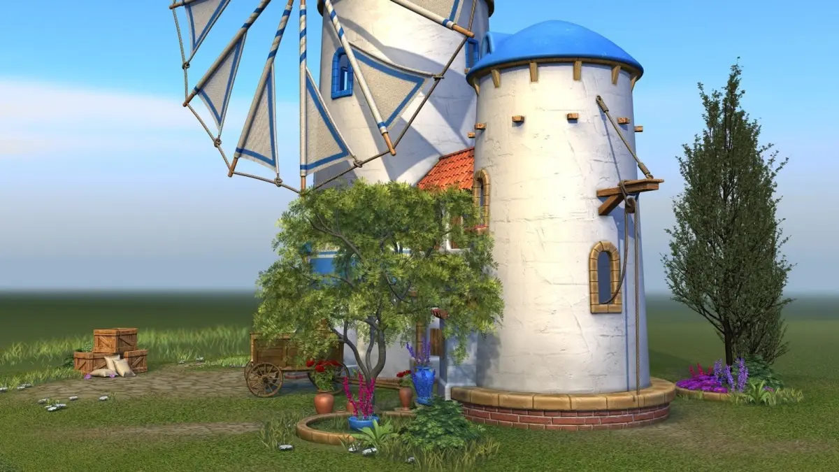 Greek windmill. 3D model made in Cinema 4D. The model is in 2 files. One is the day version and the other is the night version with lighting.
