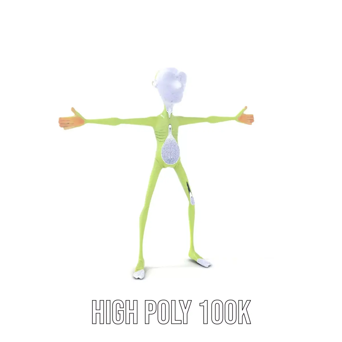 This Green Alien Character model pack brings a touch of the extraterrestrial to your projects. With a whimsical design, it's perfect for sci-fi games, animations, or film. Each model has 3 levels of detail, allowing for use in production rendering (3ds Max, Maya, Cinema4D, Blender, Vray/Corona/Cycles), game engines (Unity and Unreal compatible), and interactive presentations, providing a choice of detail based on the LOD System principle. Perfect for sci-fi adventures, educational films, or creative media. The model's textures are PBR, Diffuse, NormalMap, and reflection/roughness/metallic, suitable for any modern rendering engine. All models are accurately unwrapped with no overlapping UVs. All textures are 4096x4096 in size. Please like and leave a comment if you enjoyed the model!