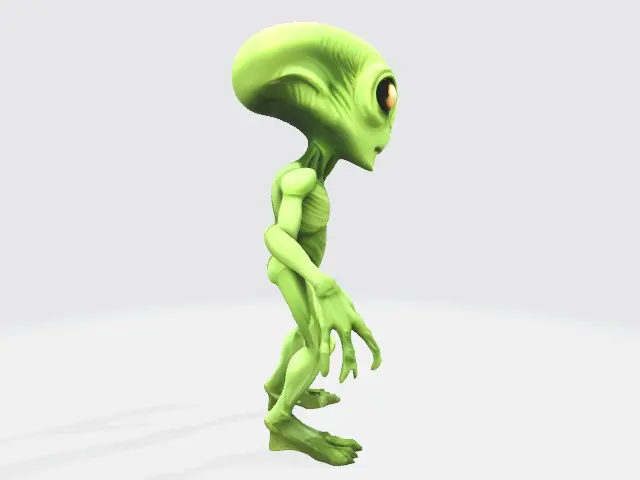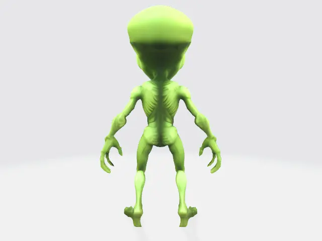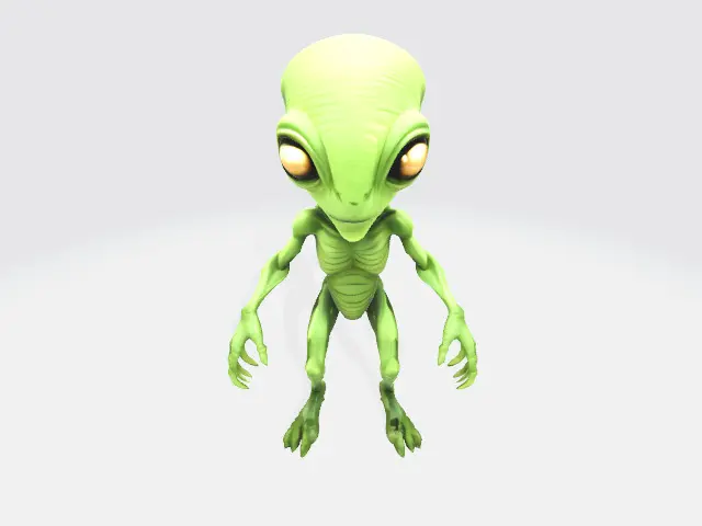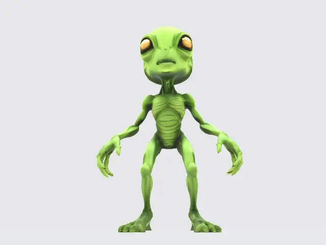 A playful green alien character model with expressive features, perfect for casual games, animations, or NFT collections.