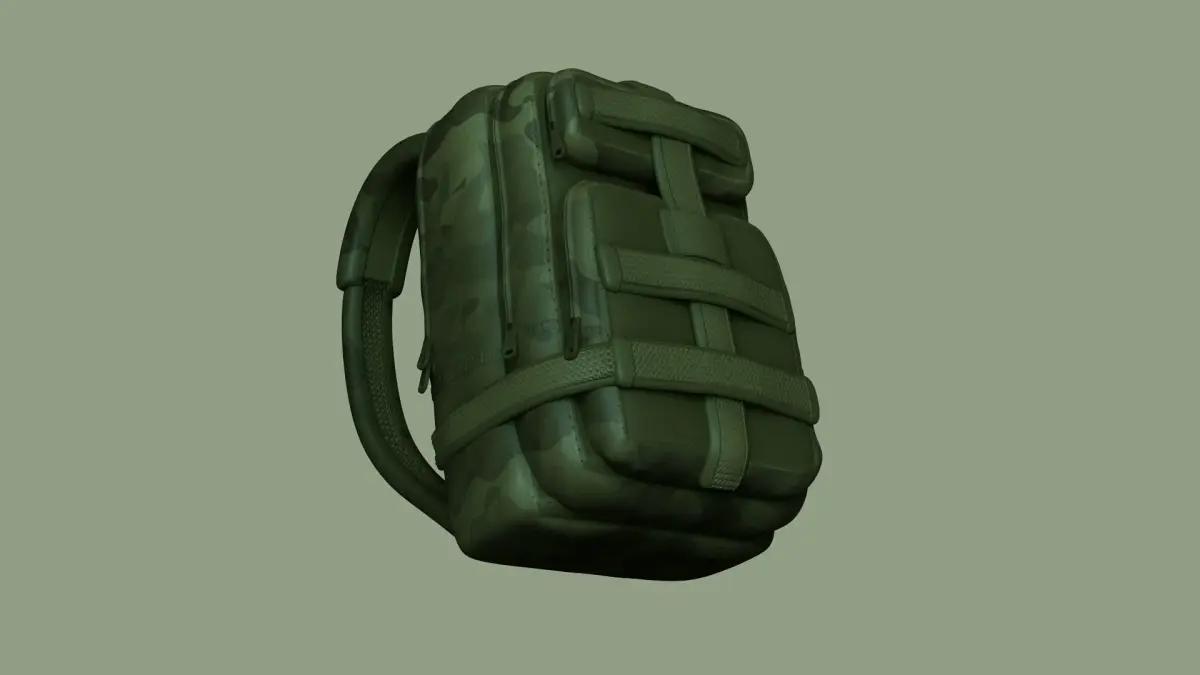 Green Camouflage Backpack - Can be used for military characters, army, soldiers, or as camping acessories - can be used as character costume/outfit/skin, or even as a decorative item.In low poly version: 1130 polygons. In highest poly version: 289280 polygons (05 subdivisions).
