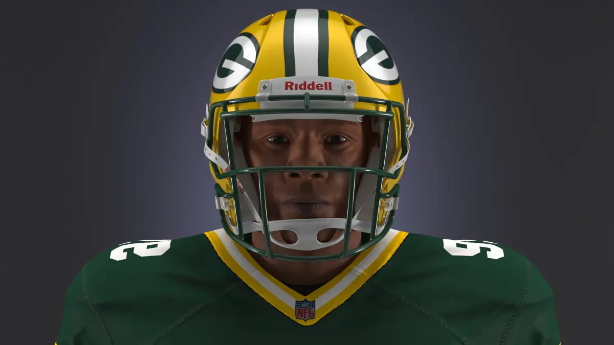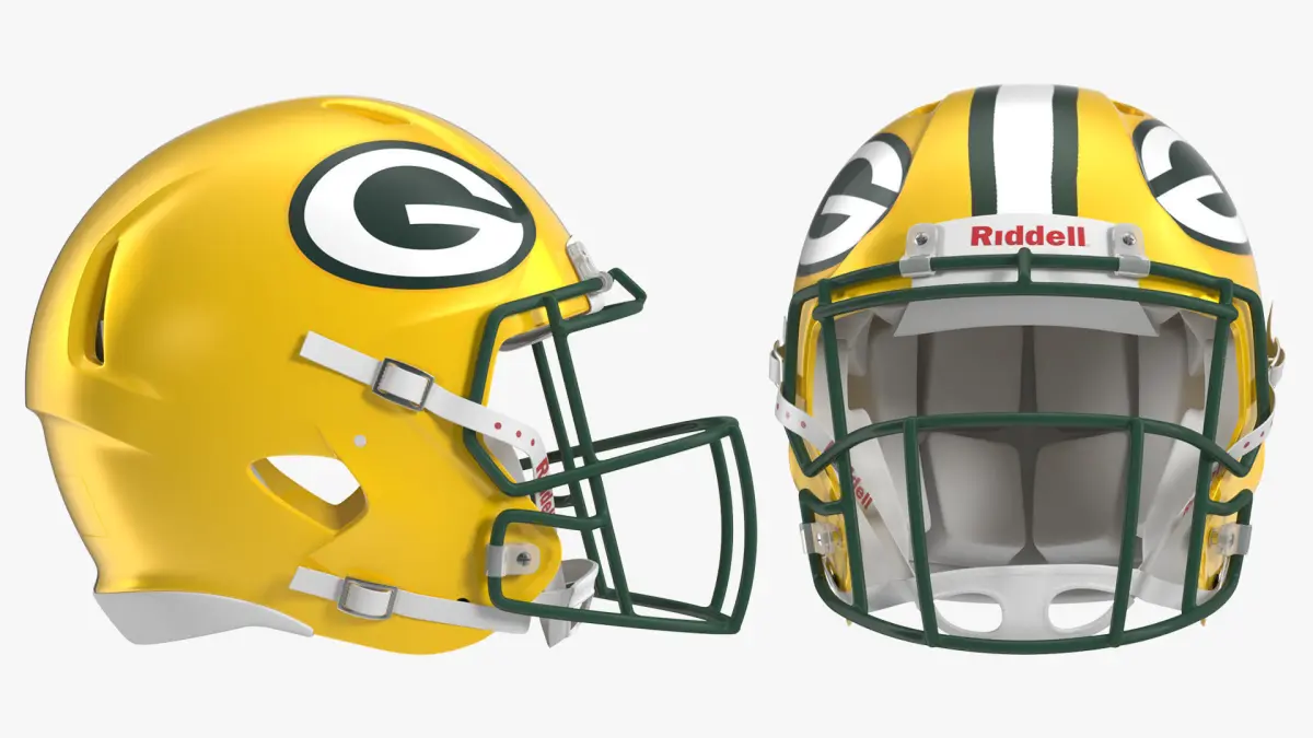 Green Bay Packers American Football Helmet is a three-dimensional model of a sporting protective headgear which is traditional part of equipment used in American football sport.