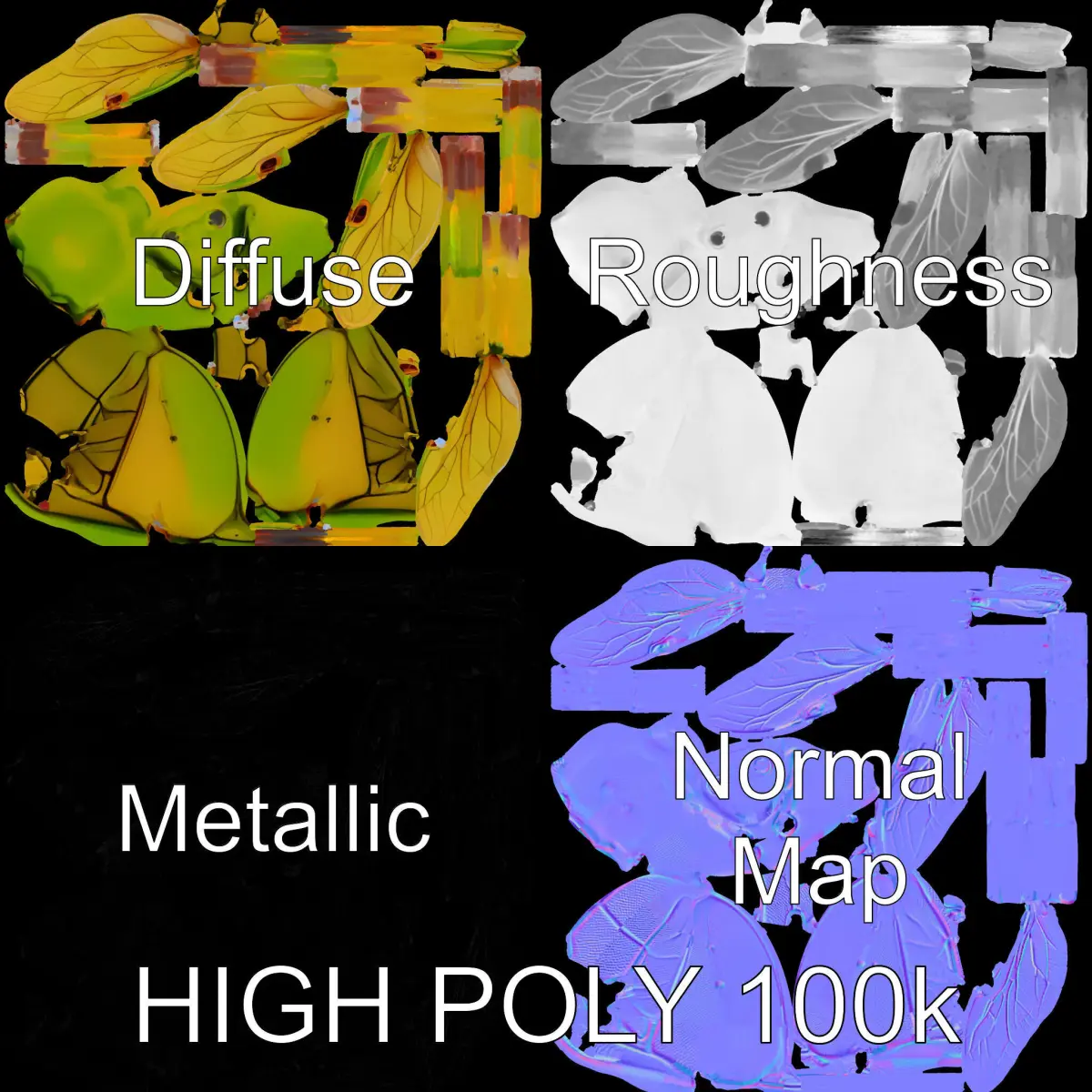 The Green Beetle Model Pack includes 3 levels of detail for versatile use: low-poly for mobile (1000 triangles), middle-poly for environments (10,000 triangles), and high-poly for detailed rendering (100,000 triangles). This model is suitable for production rendering in software like 3ds Max, Maya, Cinema4D, Blender, and is compatible with game engines such as Unity and Unreal. The model is perfect for educational purposes, insect documentaries, or as an asset in games. It includes PBR textures with Diffuse, NormalMap, and reflection/roughness/metallic maps, all at a 4096x4096 resolution. The textures enhance realism across modern rendering engines. Each model is accurately unwrapped with no overlapping UVs. The first image is the reference used for creating the 3D model. It is important to carefully evaluate the quality of the model by examining the preview images that display the topology and polygonal mesh. These previews (WIRE and WEB 3D Preview) clearly demonstrate how accurately the model matches the original reference and how well the geometry has been executed. If you like the model, please remember to leave a comment and a like!