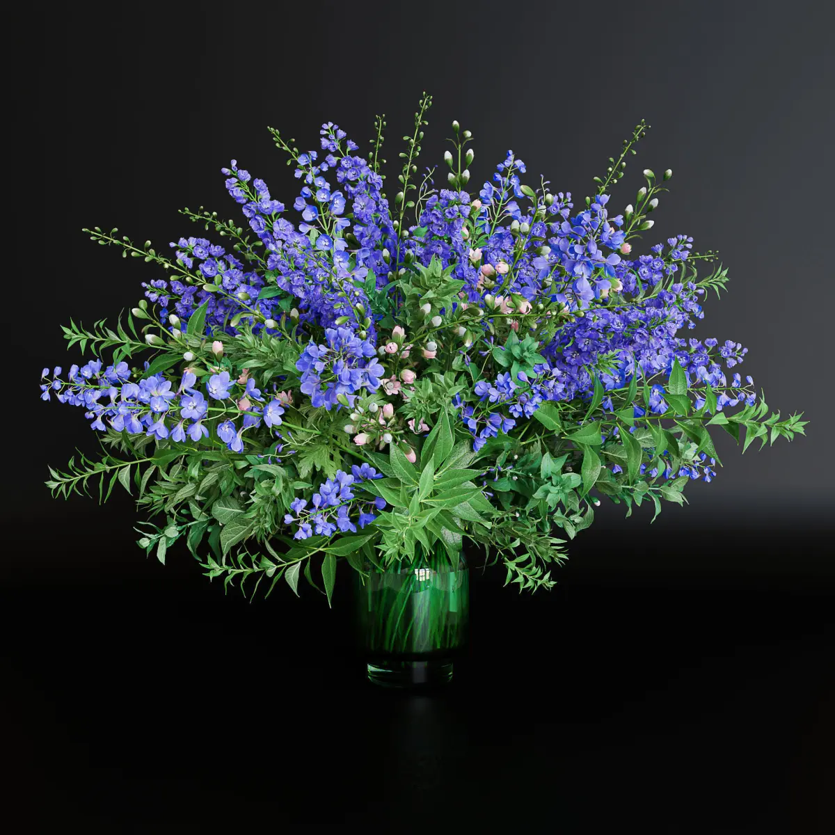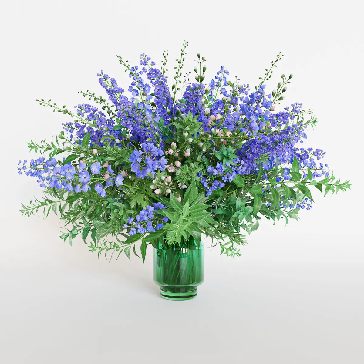 Green Bouquet of violet and blue flowers 3d-model