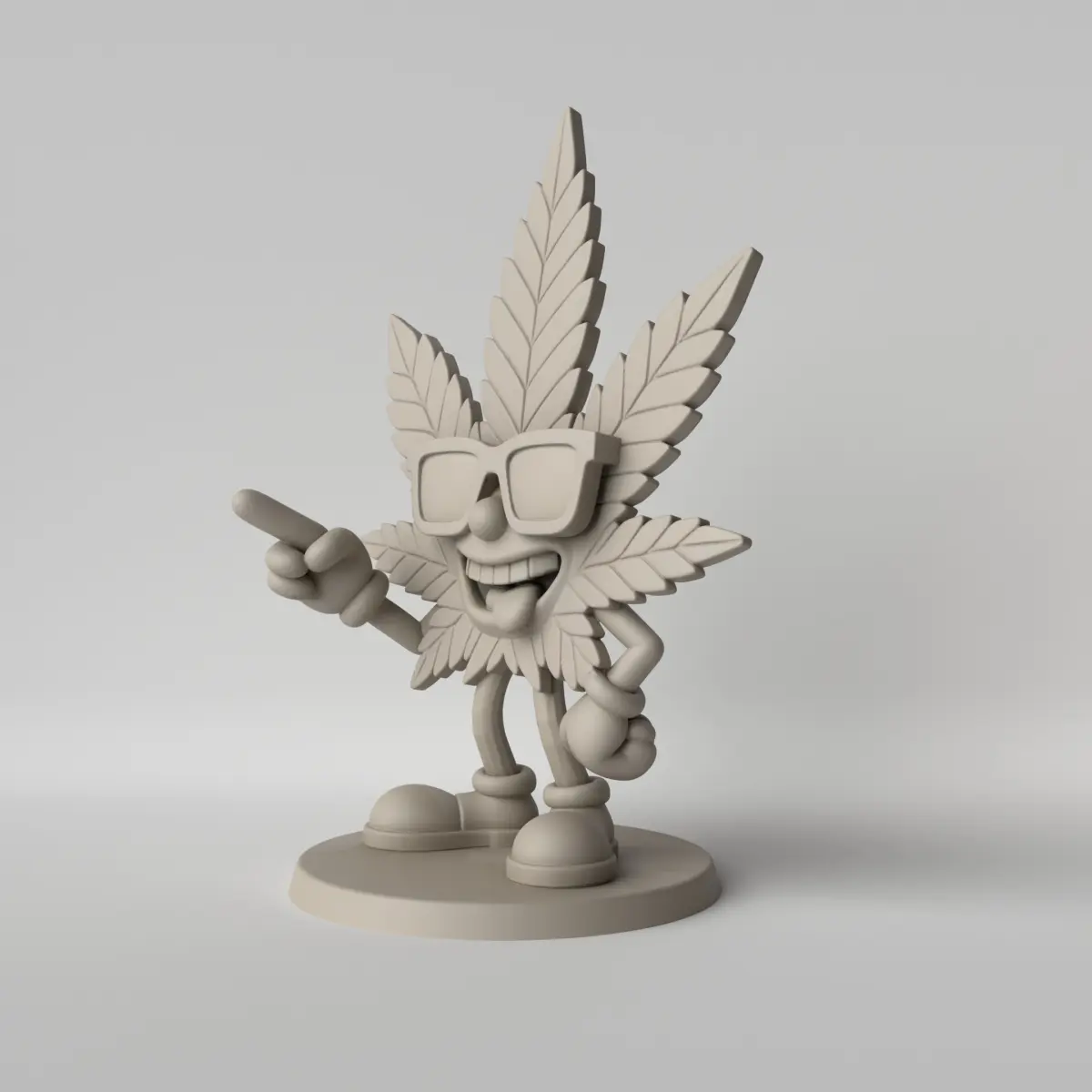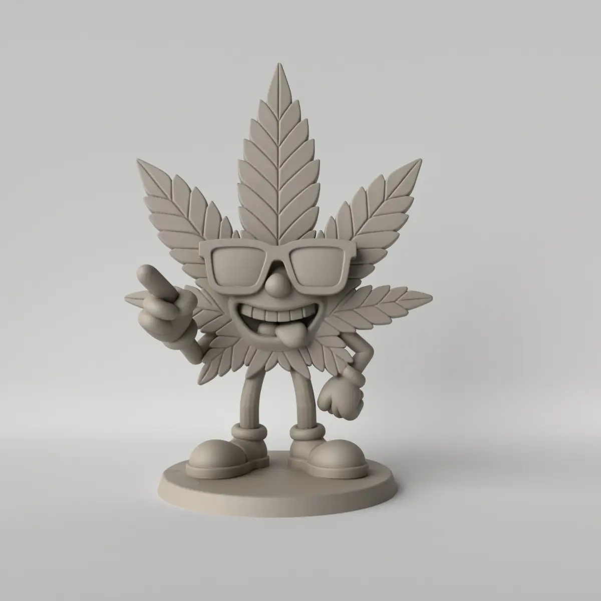 A fun and stylized sculpture of a mascot inspired by the cannabis plant. With a relaxed design, this figurine is perfect for those who enjoy cannabis culture and alternative decoration. Ideal for studios, creative spaces, or as a gift for collectors. Ready for 3D printing and customization.