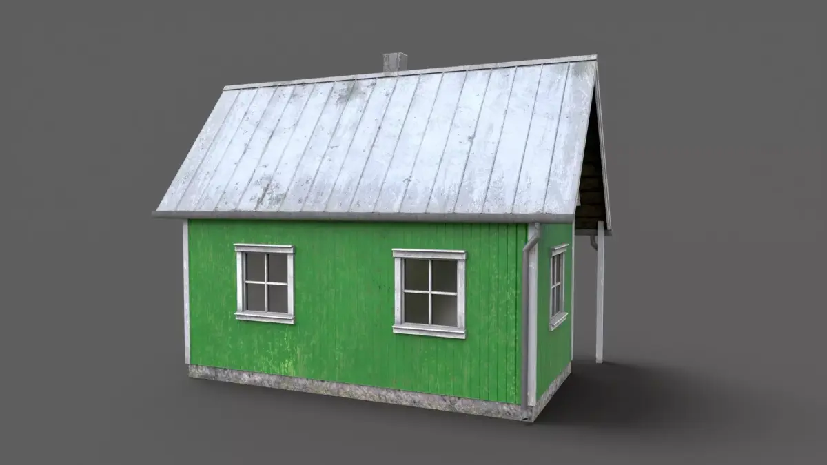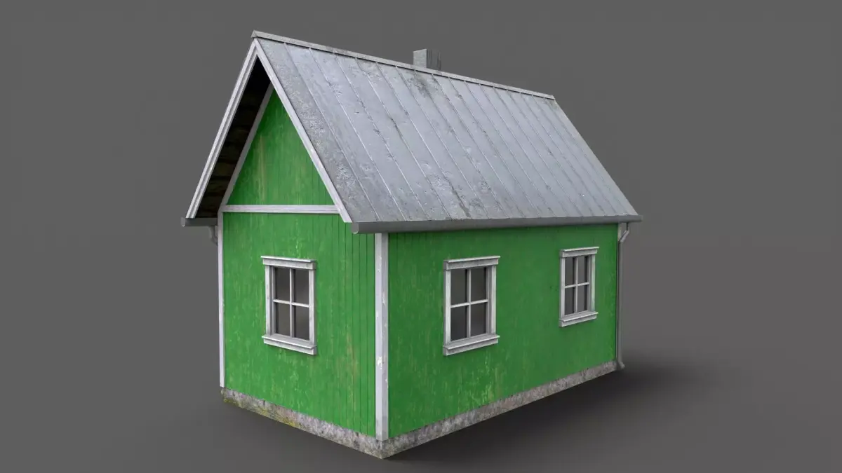 Low-poly green cabin, game-ready with PBR materials