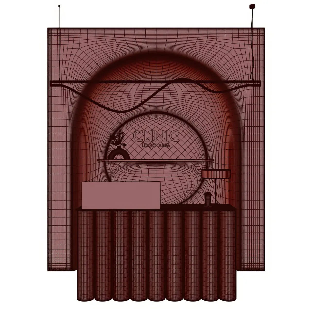 The lighting selection illuminates the space with warm white tones, creating a tranquil atmosphere. Plants and greenery enliven the reception area, adding a natural touch.