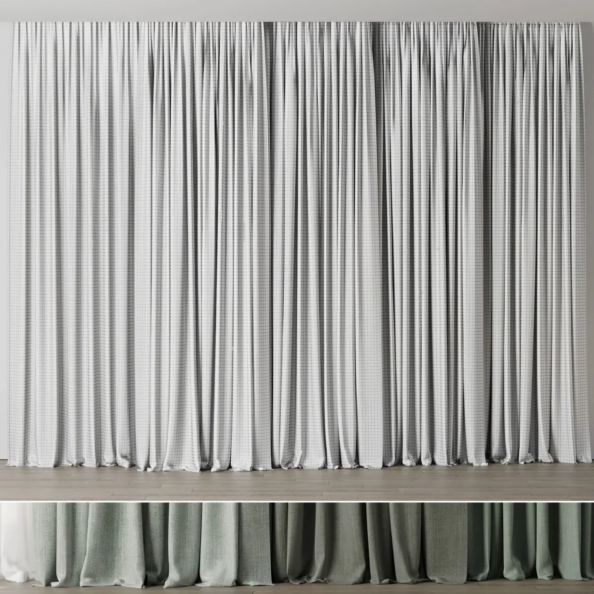 Green curtains collections 01 HBH Low-poly 3D model