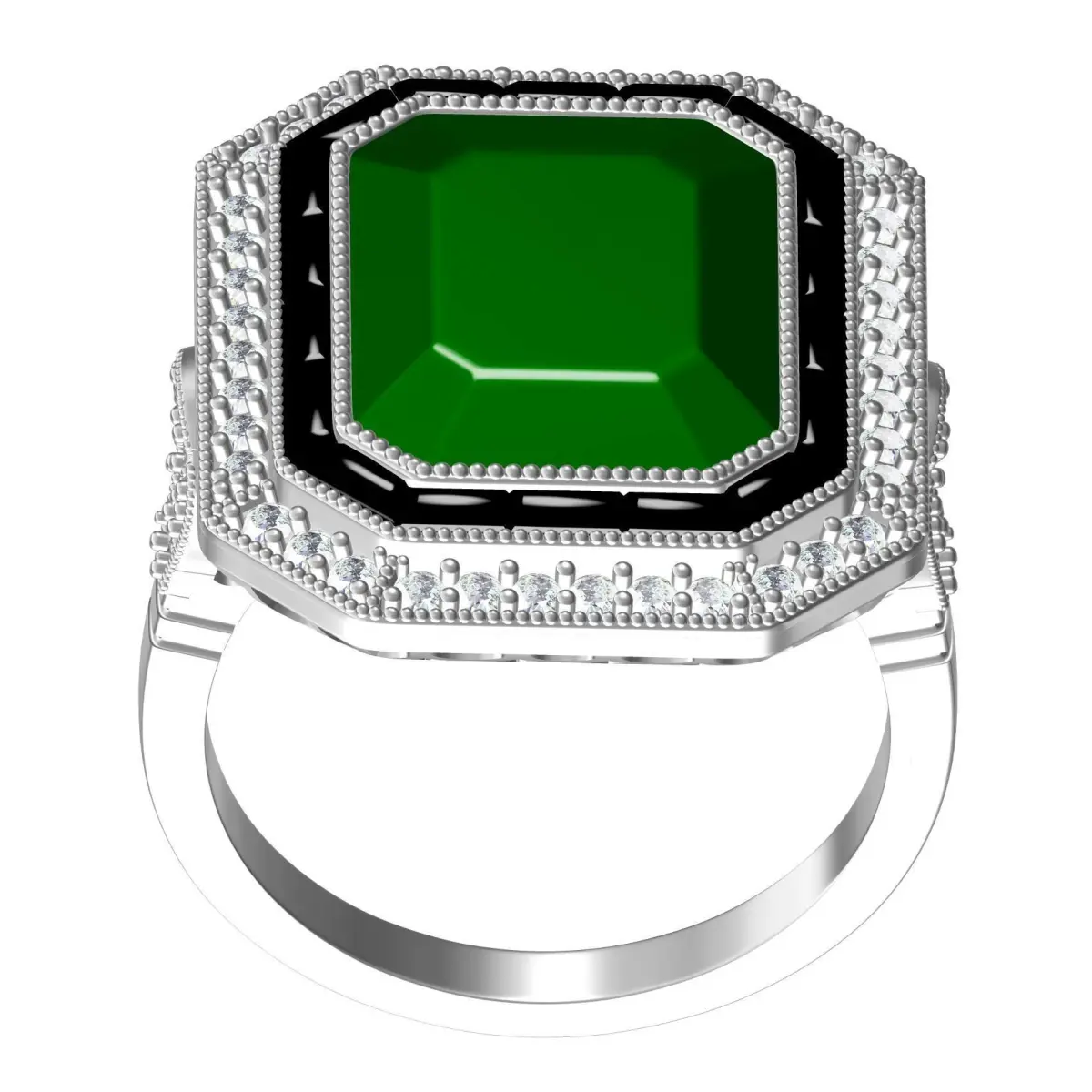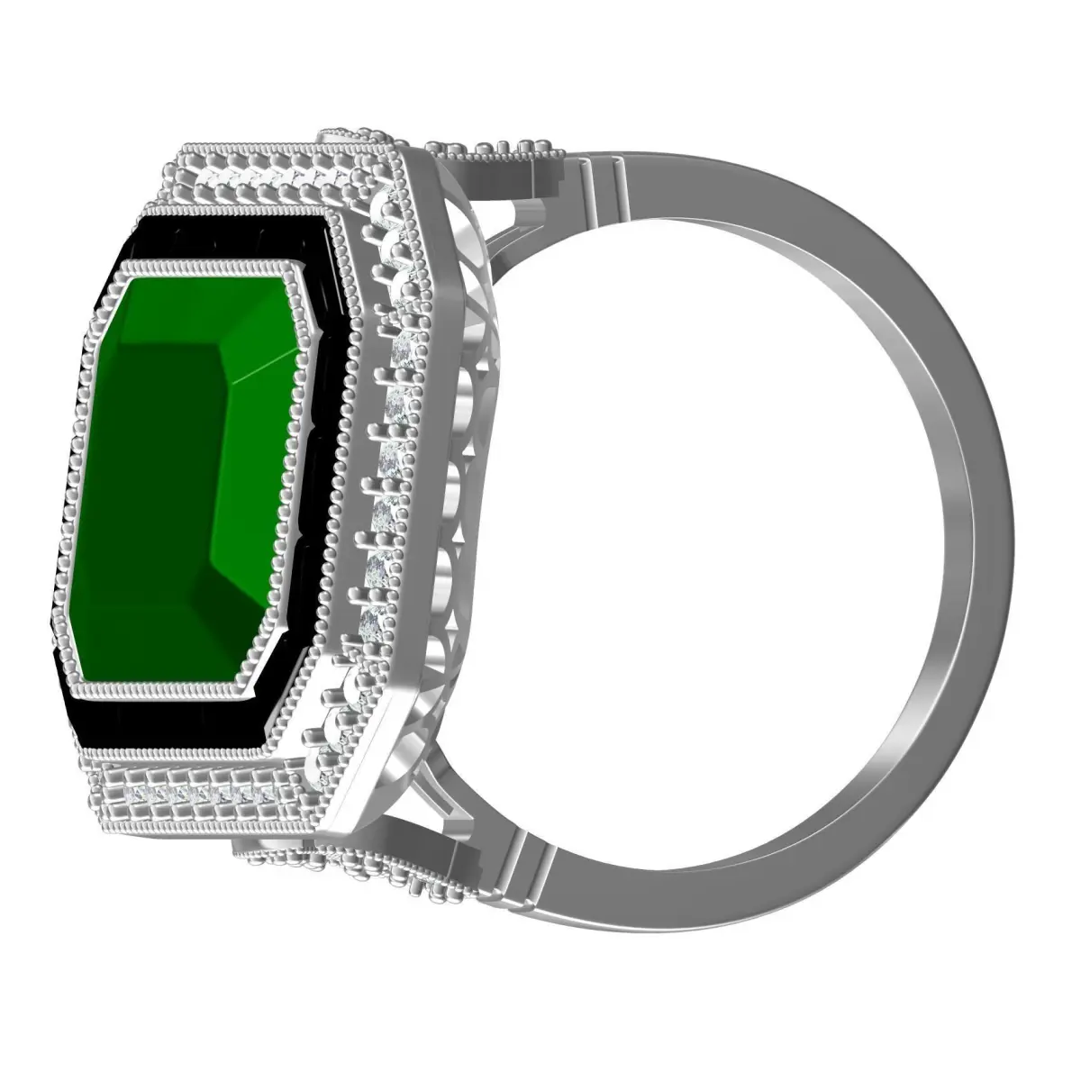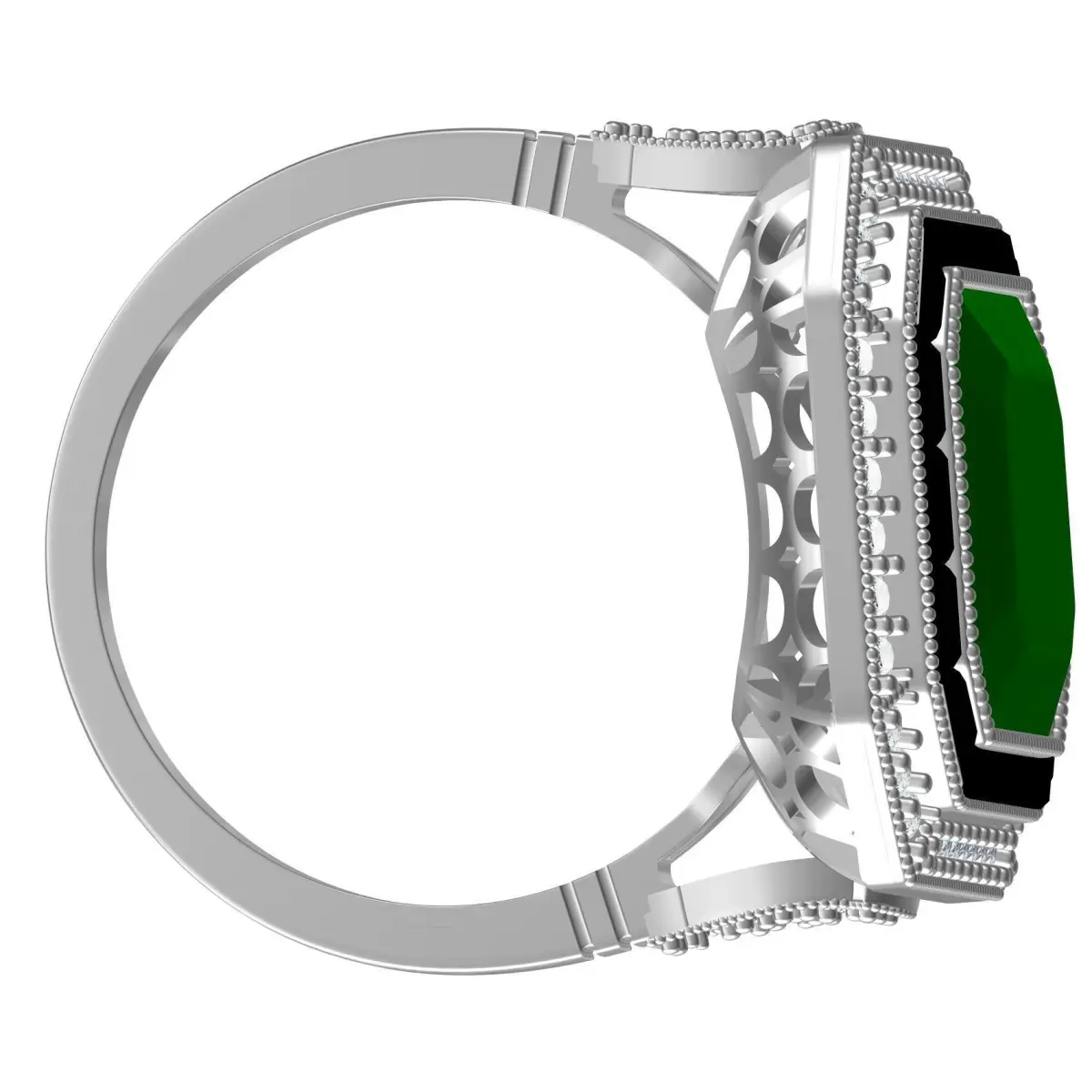 Green Emerald Stone and Black Onyx Art Deco Ring
