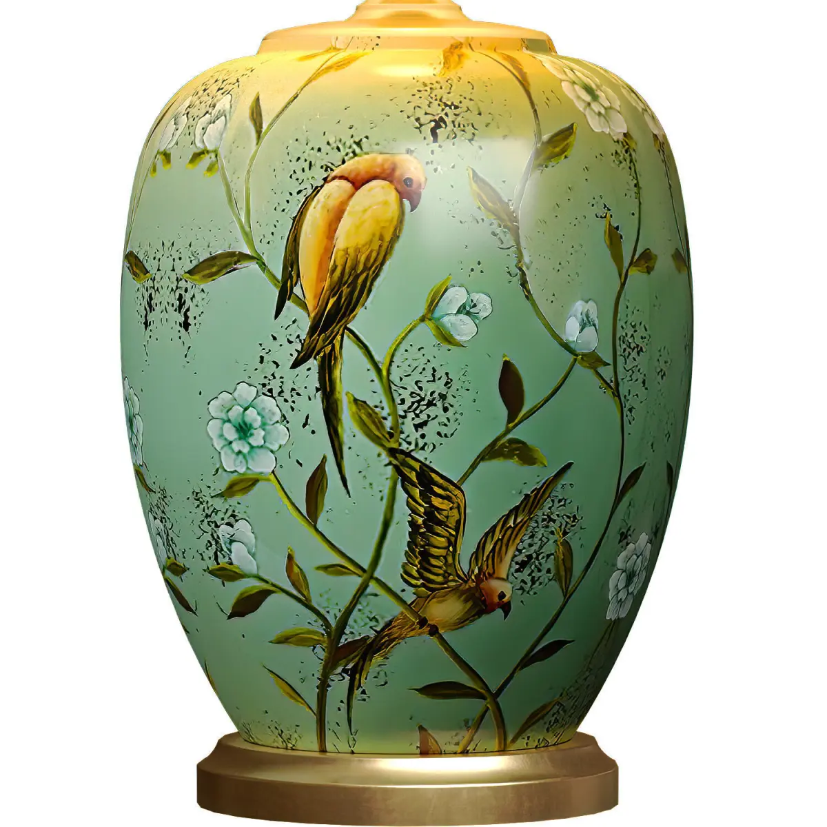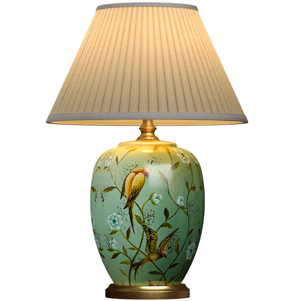 American Flower and Bird Hand-Painted Chinoiserie Nightstand Lamp,Fabric Lampshade Nightstand Lamp for Bedroom Living Room Office College Bookcase. Traditional Decorative Lamp with Chinese Pattern of Birds and flowers and Fabric Shade for Decorating Living Room, Office, Study, Bedroom, Bedside Table, Bedside Table in European Style Painted Chinoiserie Nightstand Lamp,Fabric Lampshade Nightstand Lamp for Bedroom Living Room Office College BookcaseHand-painted table lamp with Chinese ornaments, Sakura flowers and birdsEuropean style Lamp for Home Decoration, Bedroom LightingCeramic Green Table Lamp