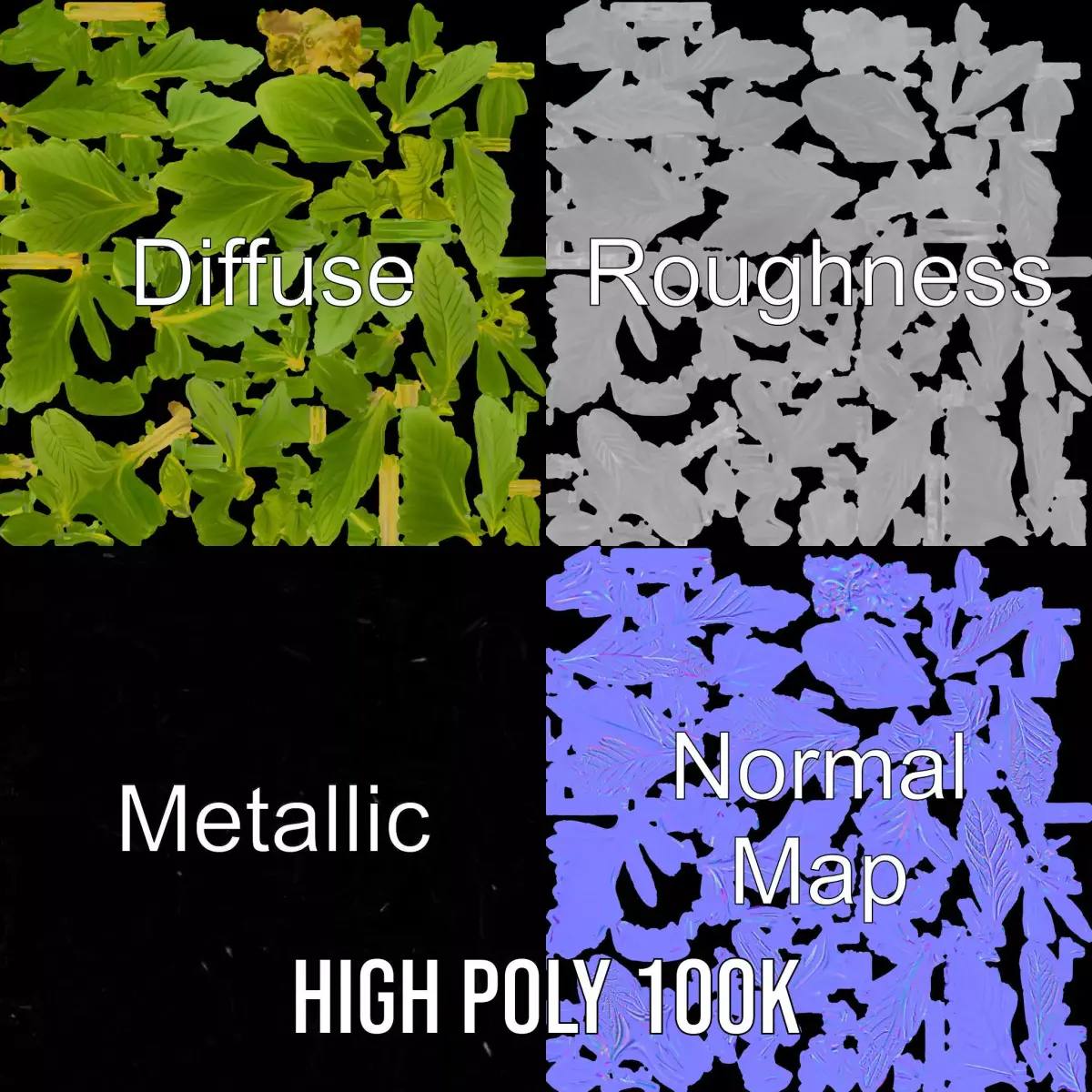 The Green Herbaceous Plant model pack provides a detailed, realistic representation of a vibrant plant, ideal for use in both natural and garden environments. Perfect for architectural visualizations, animation, and virtual reality projects, this model enhances atmospheres with its lush detail. Each model has 3 levels of detail: low-poly(1000 triangles for mobile), middle-poly(10 000 triangles for environment), and high-poly(100 000 triangles), which allows for the use of this model in production rendering(such as 3ds max, Maya,Cinema4d, Blender, Vray/Corona/Cycles and all other ), game engines(Unity and Unreal compatible), and interactive presentations, providing a choice of detail based on the LOD System principle. The model's textures are PBR, Diffuse, NormalMap, and reflection/roughness/metallic, which are suitable for any modern rendering engine. All models accurately unwrapped and have no overlapping UV. All textures are 4096*4096 in size. Please like and leave a comment for the model if you enjoyed it.