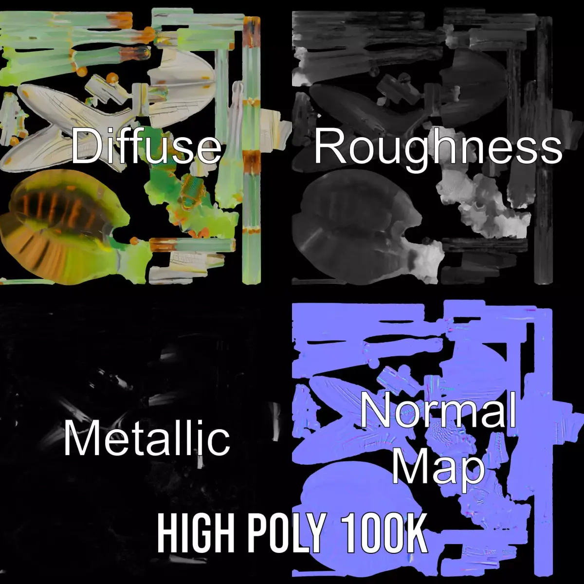 The model's textures include PBR, Diffuse, NormalMap, and reflection/roughness/metallic, which are suitable for any modern rendering engine. All models are accurately unwrapped and have no overlapping UV. All textures are 4096x4096 in size.