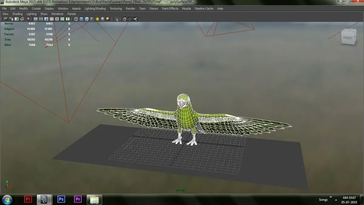 Along with the material, texture, I have added one Wireframe preview of the Green Parrot.