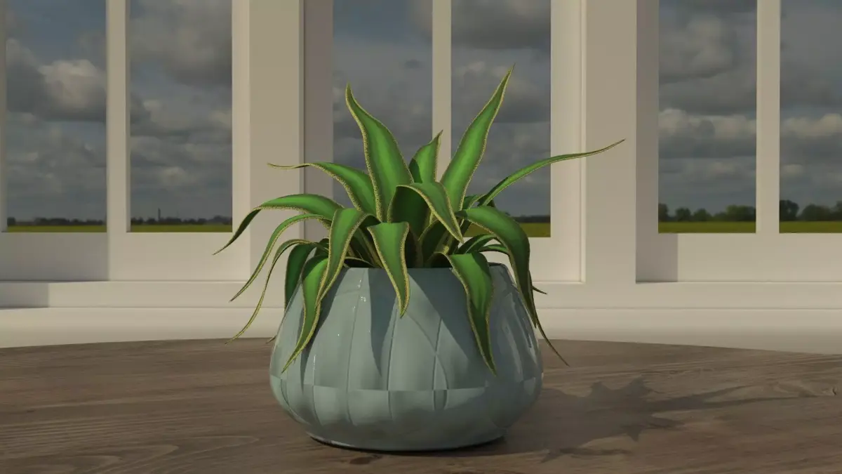 High detailed and accurate green plant in a blue pot 3D modelUnits used: cm