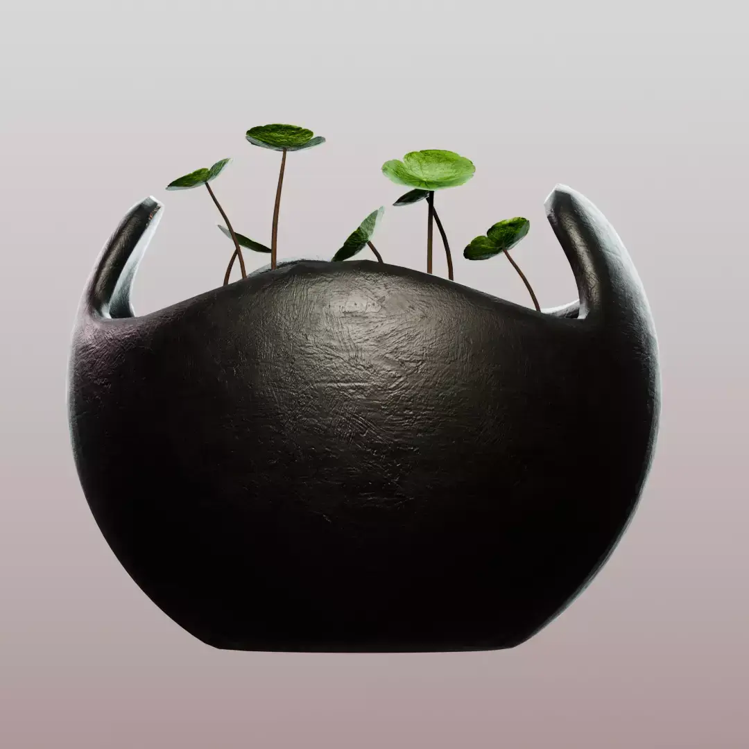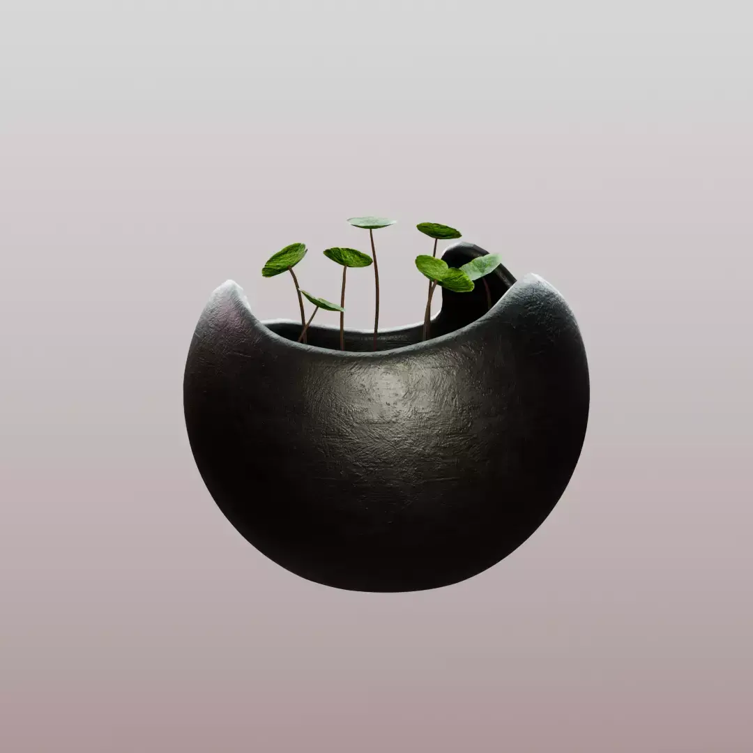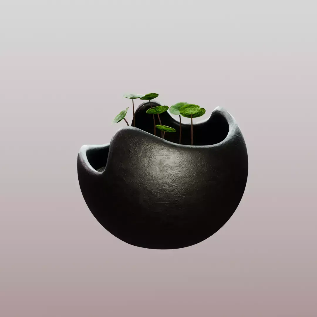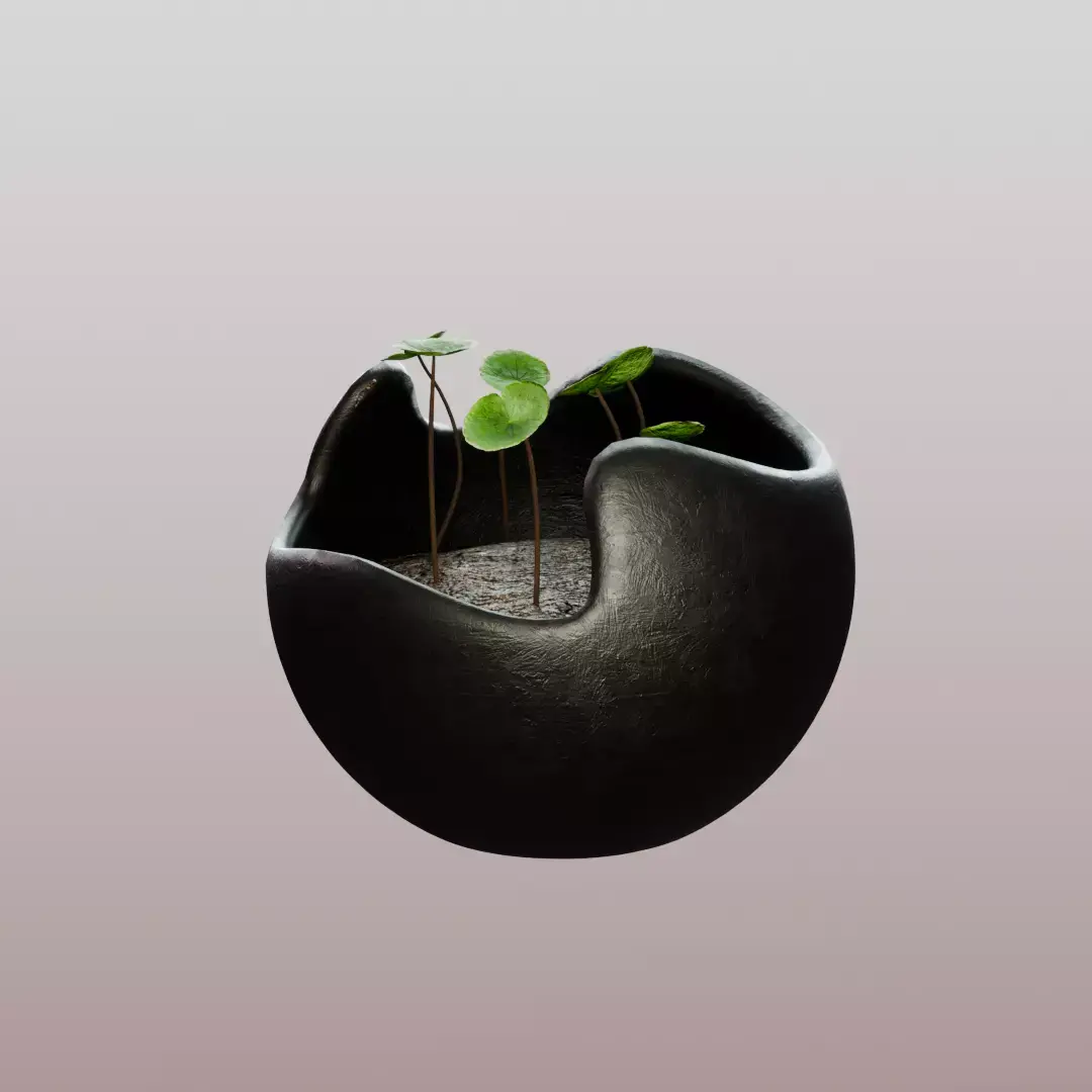 This is a high-quality, stylized 3D model of a modern black ceramic planter featuring delicate Pennywort-inspired sprouts emerging from textured soil.Designed with smooth organic shapes and a minimalist aesthetic, this asset is perfect for:Interior visualizationStylized or realistic environment designArchitectural renderingsDecor elements in games, animations, or product presentationsThe model includes carefully crafted materials, clean geometry, and detailed textures for a polished, professional look.