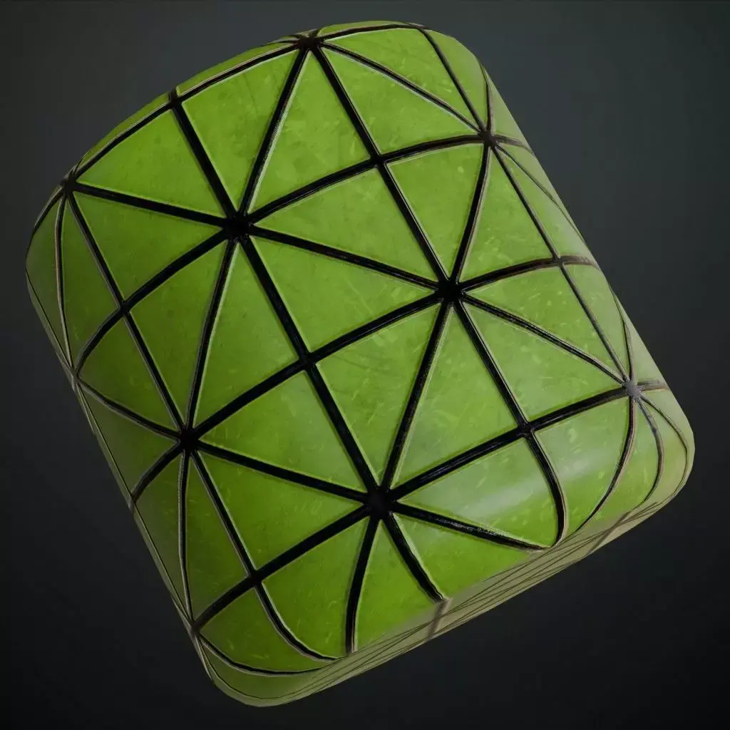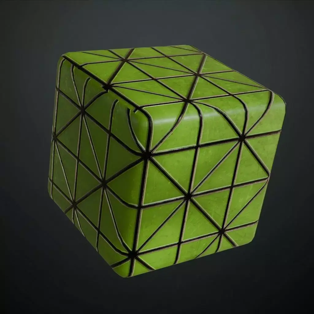 This is a high-quality PBR Texture Pack of a Green Sci-Fi Wall surface.All essential Maps, including BaseColor, Normal, Roughness, Height, and Metallic, are provided to deliver a highly realistic and technologically advanced finish. This material features a sophisticated array of paneling, consisting of a structured grid of embossed square and rectangular sections, accented by precise industrial grooves and mechanical indentations. The vibrant green metallic paint is detailed with realistic edge wear, subtle scuffs, and dark-toned diagonal warning stripes, making it an ideal choice for futuristic military installations, high-tech factory floors, sci-fi cargo holds, or specialized environment assets.