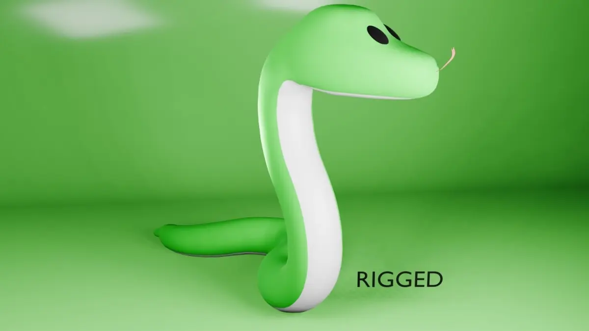 Fully Functional Rigged Snake Character He Cane Move His Full Body and his Toung AlsoCreated By BlenderClean Topology