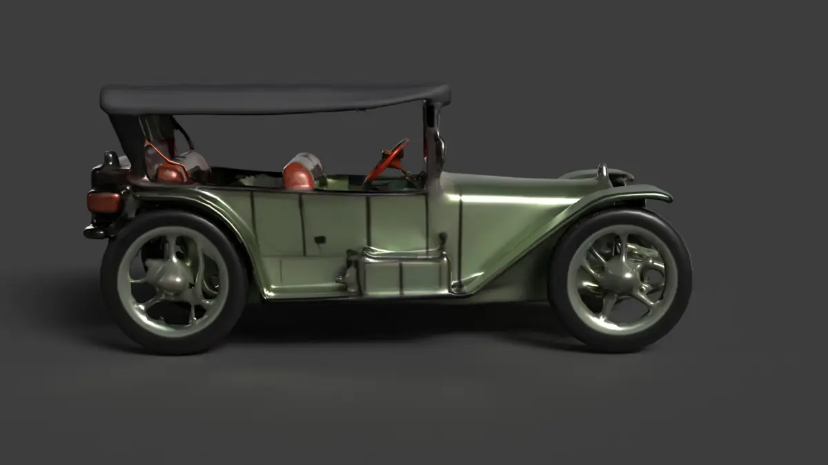 Green vintage car figure 3D models created in 3D Max. All scene and texture map are included in zip file. Final images rendered with v-ray.Available files: chinese_vintage_carA zip file3D MaxWavefront(.OBJ)Image file(.jpg)chinese_vintage_buggyC zip filePolygons: 42788Vertices: 21296v-ray version: 6.20.06